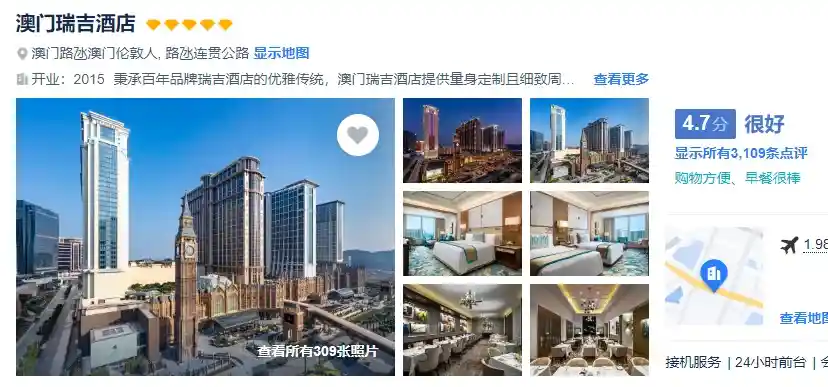 百年品牌瑞吉酒店3280元| 澳门瑞吉酒店双飞4日3晚|梦回伦敦 沉迷于大本钟|24H客房服务|SPAI健身房|游泳池|伦敦钟楼