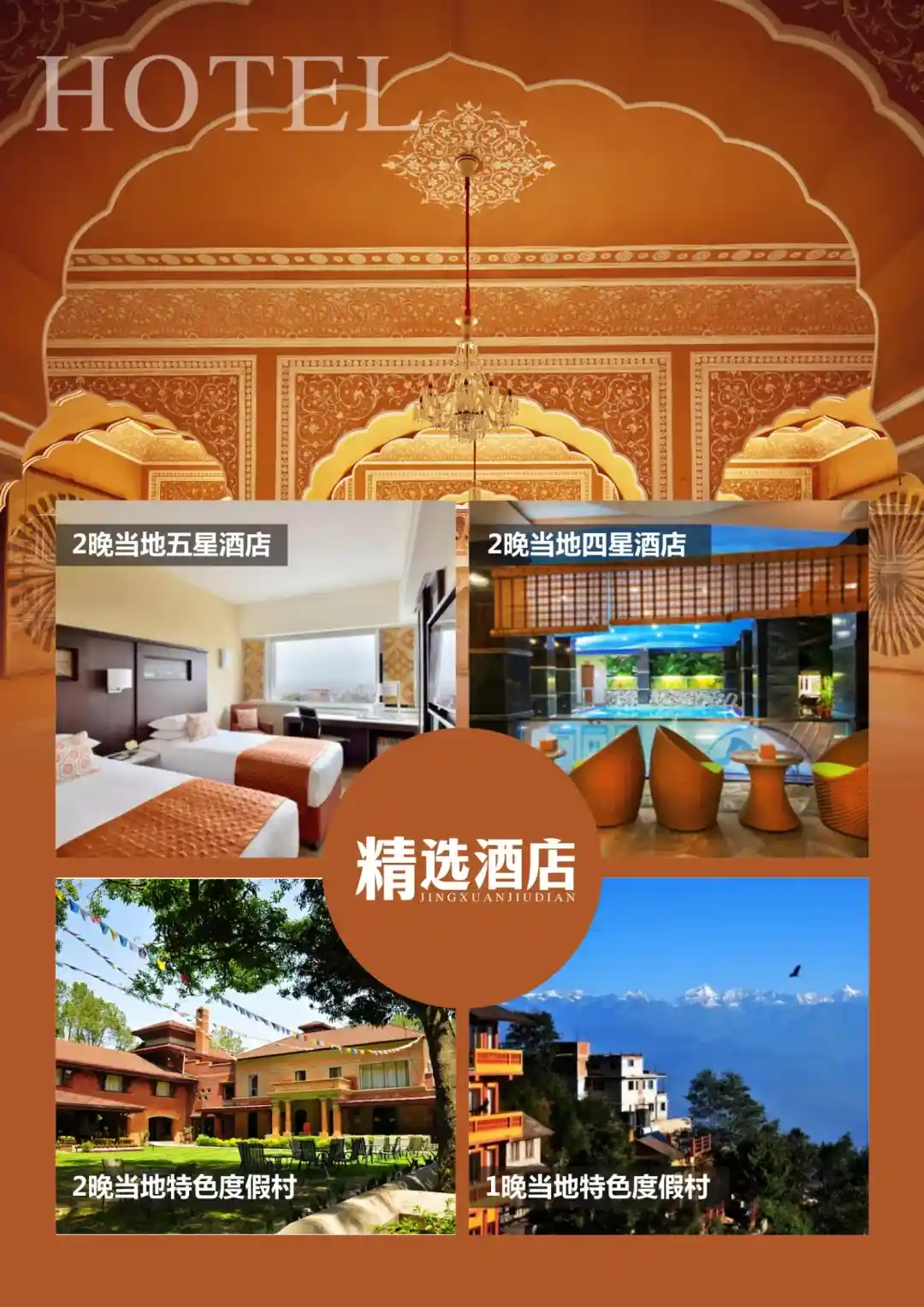 7..住:2晚加德满都五星+2晚博卡拉四星(第三方认证)+奇特旺2晚丛林度假酒店+纳加阔特1晚悬崖观景酒店