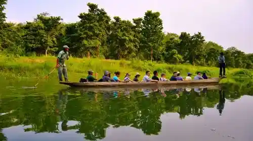 ●抵达奇特旺安排午餐并入住丛林特色度假村宾馆。乘坐独木舟【时间 45 分钟】,在娜普娣河(Rapti)河上漂流,如果运气好的话还可以看到野生的鳄鱼和漂亮的水鸟。