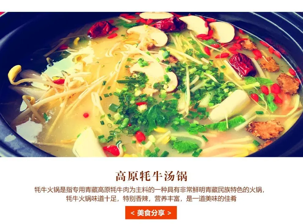 2.川主寺镇午餐【牦牛煲汤锅】(餐厅有当地药材,牦牛肉等土特产,游客朋友可根据个人喜好购买)。