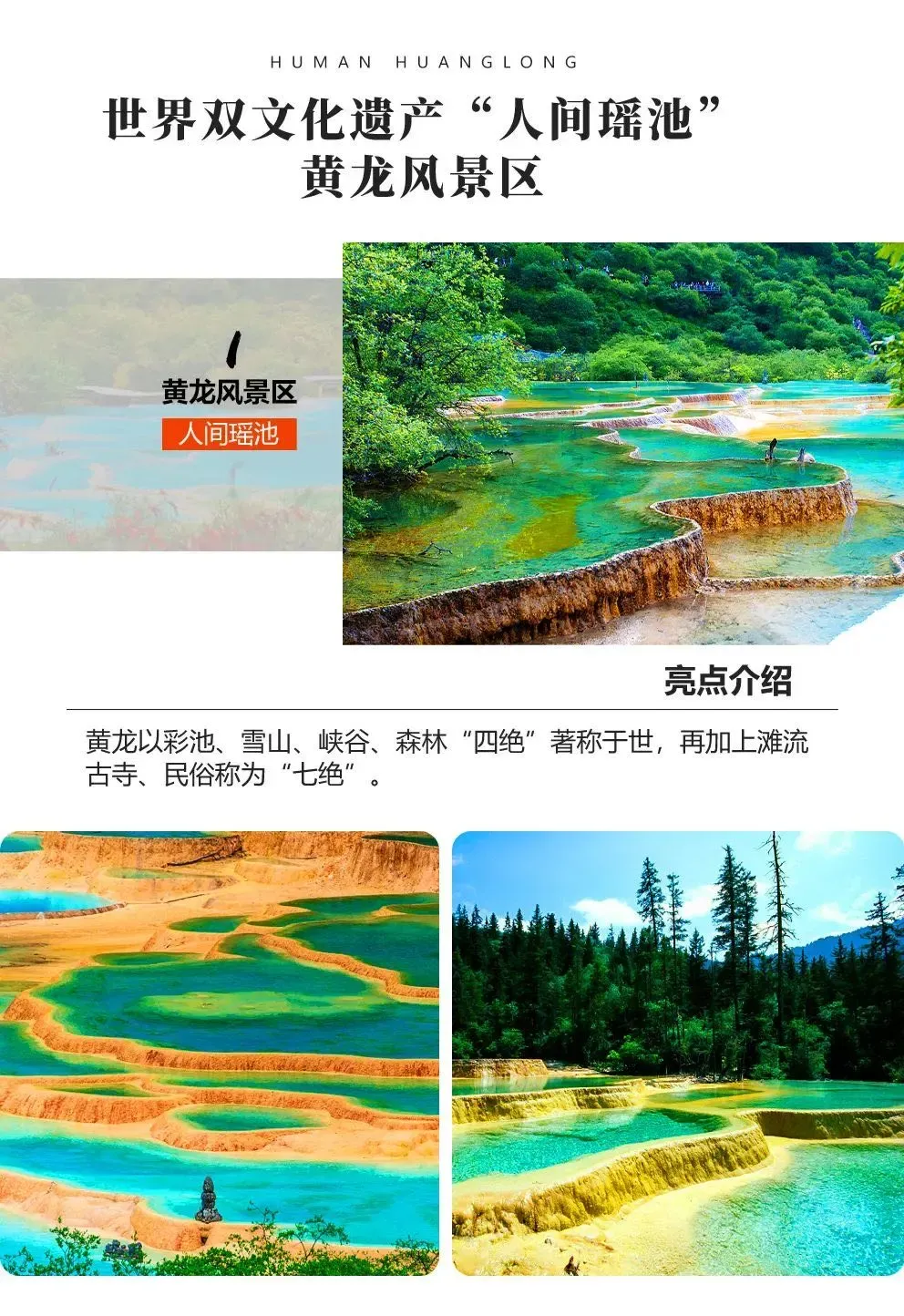 特别备注:如黄龙景区无法正常游览,则改为游览牟尼沟景区;