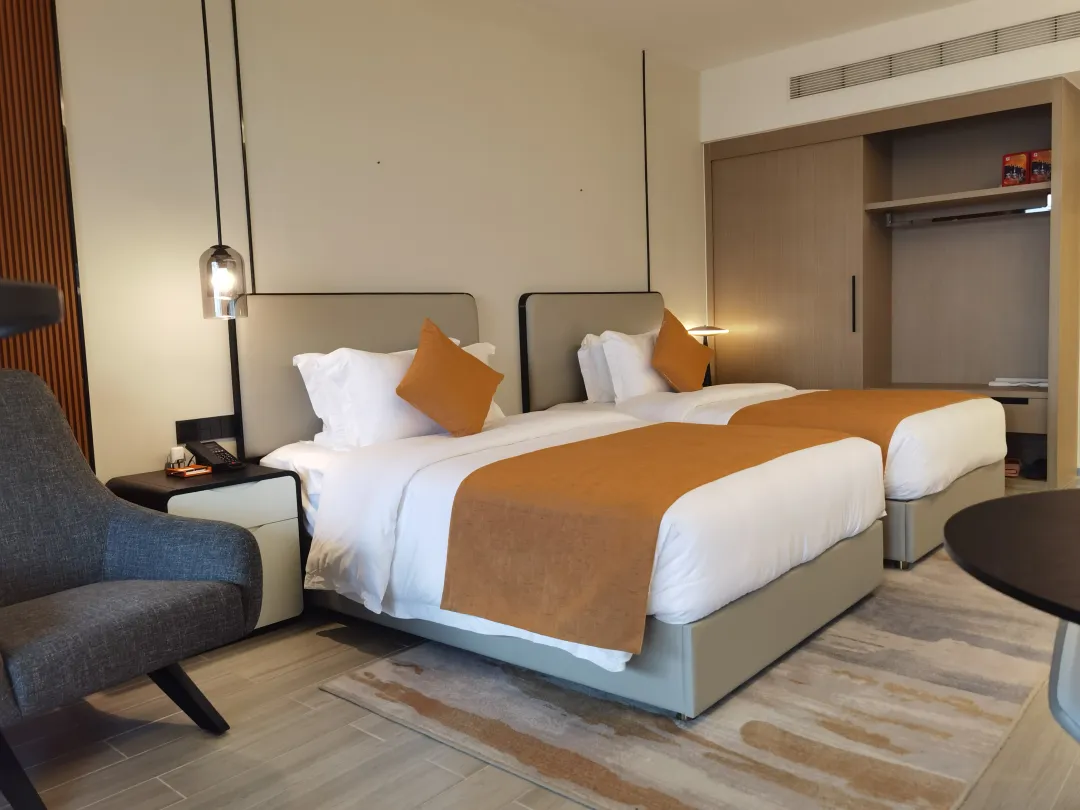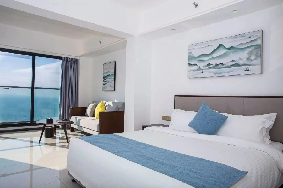 丰富娱乐配套:酒店拥有5 间奢华KTV包厢,4间棋牌室 ,电影院,乒乓球,桌球,健身房,瑜伽室,沙滩足球,沙滩排球,网红秋千,水上划船,500㎡室内儿童城堡,120㎡国际化射箭馆、约900㎡全海景户外草坪等娱乐设施。