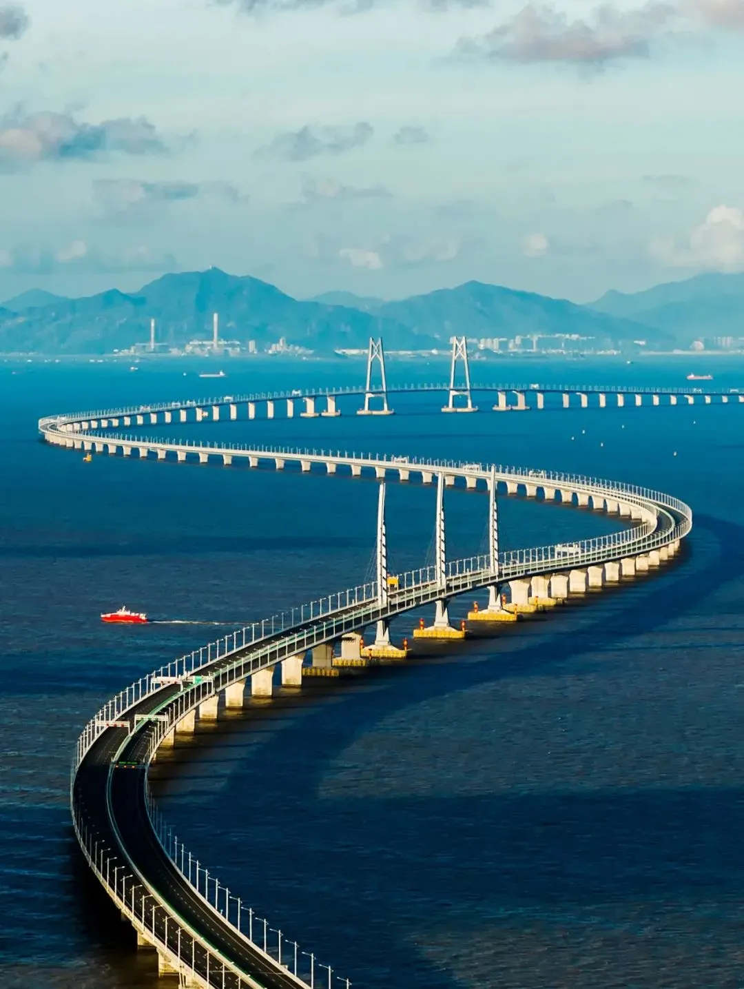 后乘金巴穿越【港珠澳大桥】,这座被誉为为人类史上的超级工程,是世界最长的跨海大桥。历时9年,全长55公里,它被英国卫报评为“新的世界七大奇迹之一”,后入住澳门酒店。