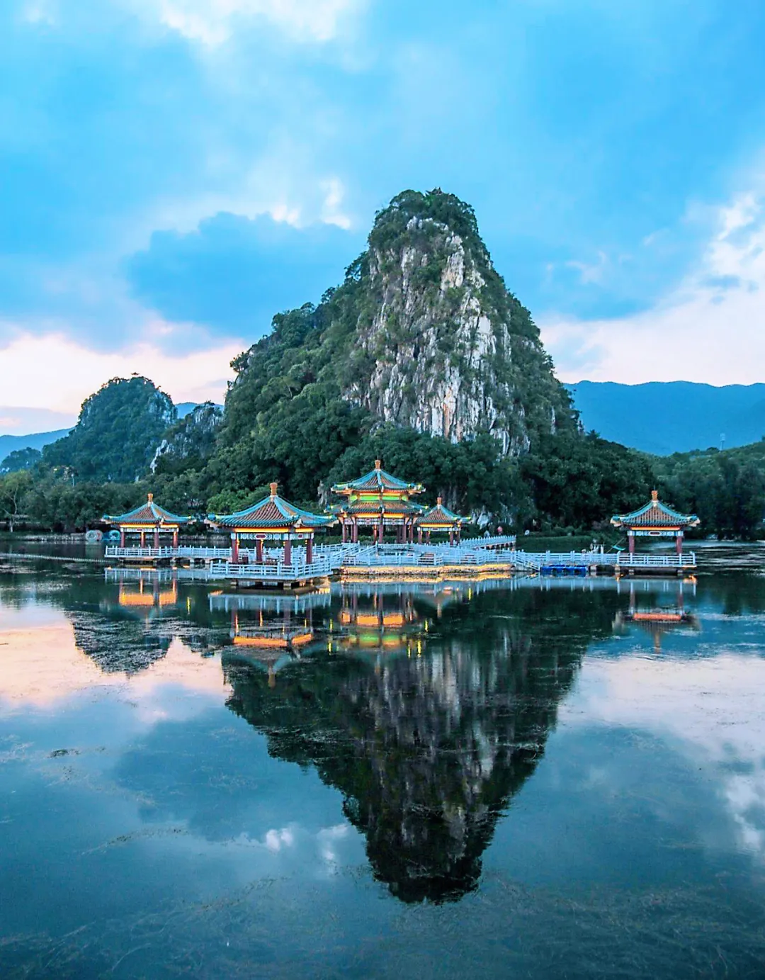 早餐后,乘车肇庆前往游览有西湖水,桂林山之称的【七星岩风景区】,景区由五湖、六岗、七岩、八洞组成,面积8.23平方公里,湖中有山,山中有洞,洞中有河,景在城中不见城,美如人间仙景。七星岩以喀斯特溶岩地貌的岩峰、湖泊景观为主要特色,七座排列如北斗七星的石灰岩岩峰巧布在面积达6.3平方公里的湖面上,20余公里长的湖堤把湖面分割成五大湖,风光旖旎。被誉为"人间仙境"、"岭南第一奇观"。国家级文物保护单位七星岩摩崖石刻是南中国保存得最多最集中的摩崖石刻群。