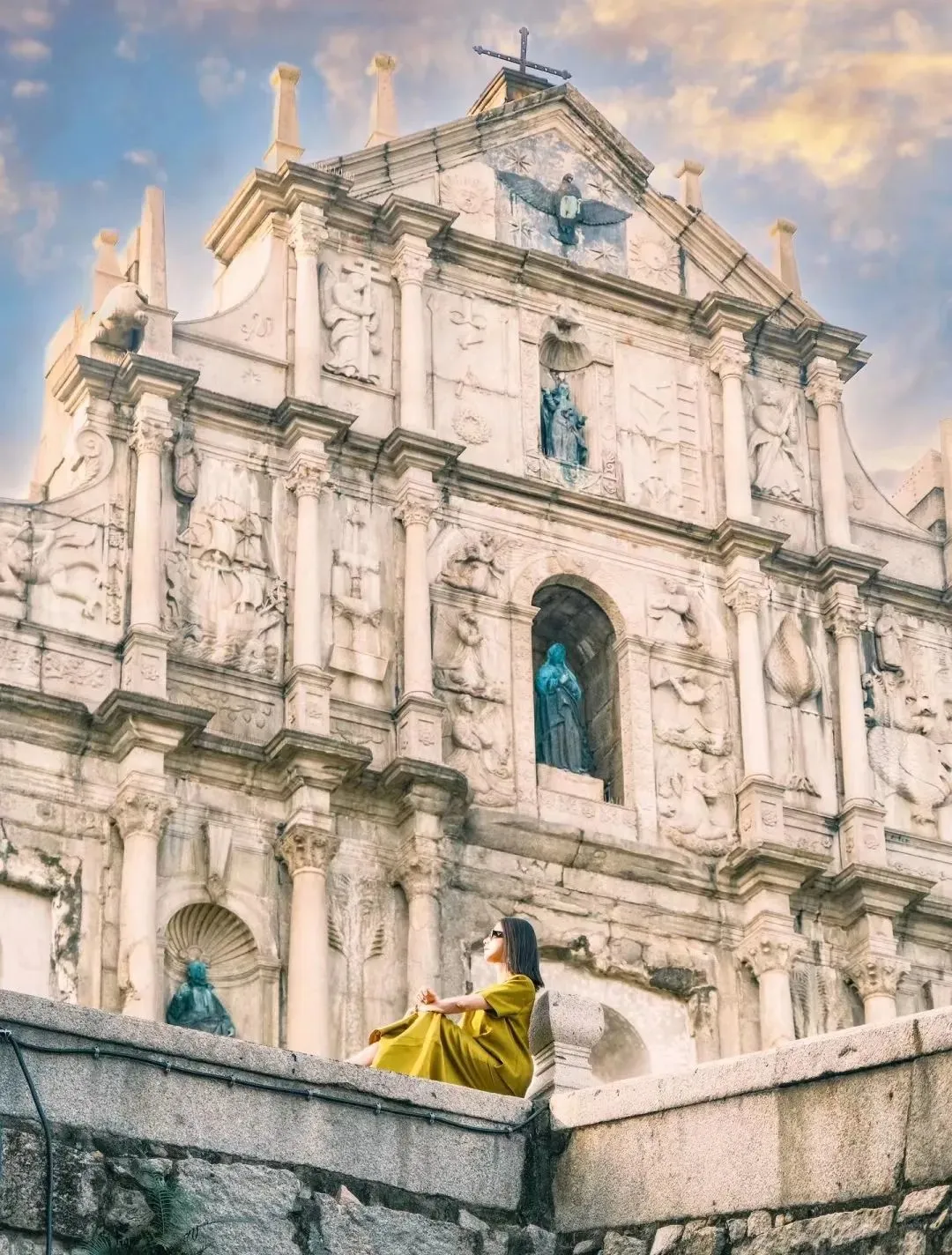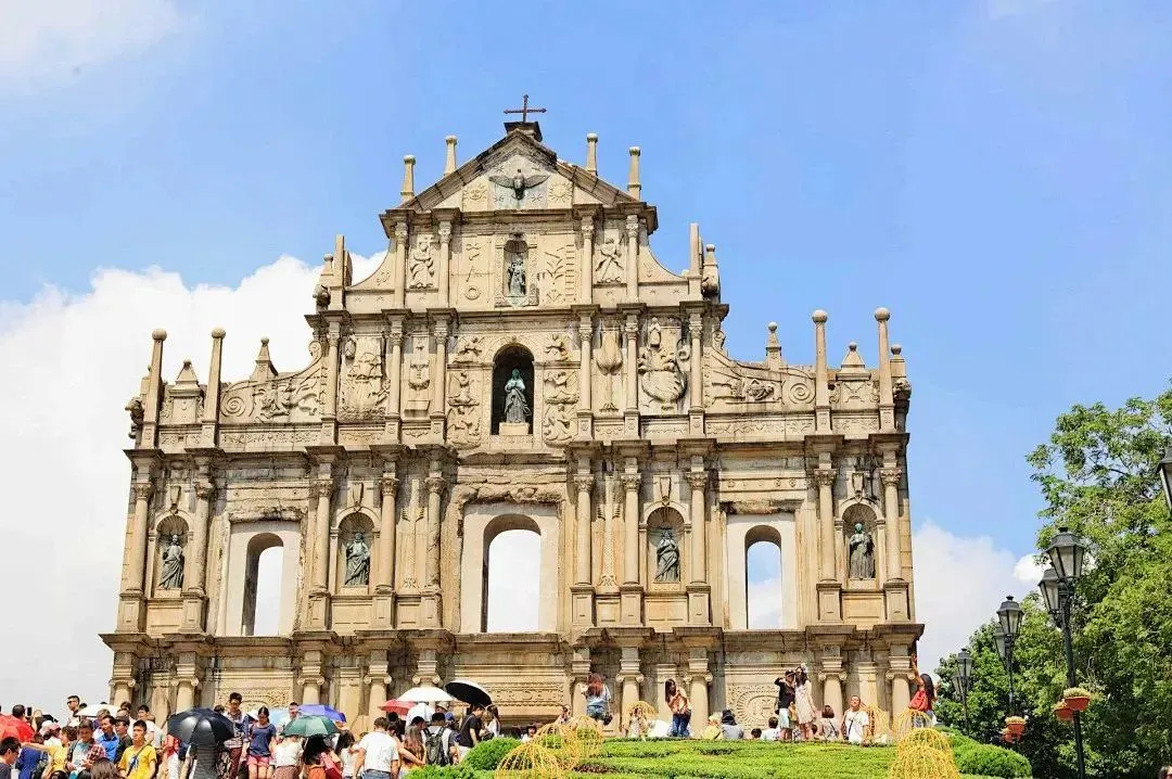 早餐后,游览澳门的标志建筑物【大三巴牌坊】【大炮台】(停留30 分钟),这里是来到澳门值得拍照留念的地方,大三巴牌坊建筑糅合了欧洲文艺复兴时期与东方建筑的风格而成,体现出东西艺术的交融,雕刻精细, 巍峨壮观。由三至五层构成三角金字塔形,无论是牌坊顶端高耸的十字架, 还是铜鸽下面的圣婴雕像和被天使、鲜花环绕的圣母塑像,都充满着浓郁的宗教气氛,给人以美的享受。牌坊上各种雕像栩栩如生,堪称“立体的圣经”。