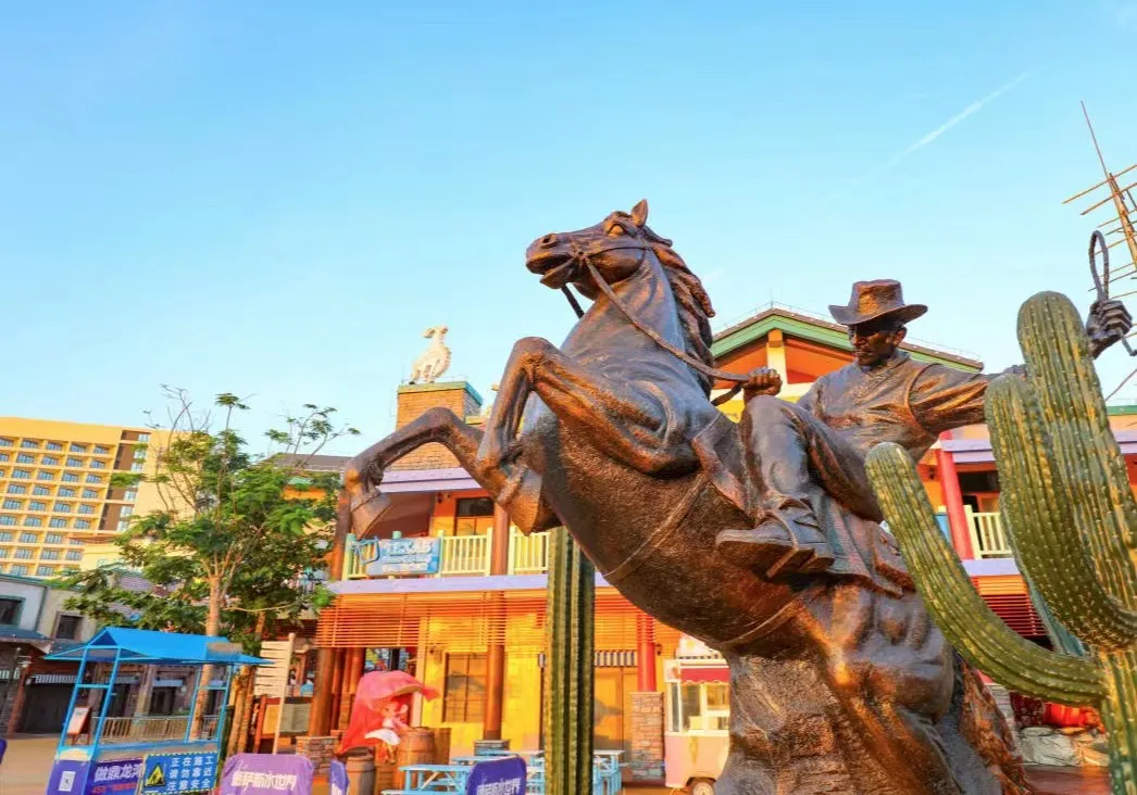 欣赏金牌景观之【鼎龙逐浪】,游览【德萨斯牛仔小镇】,以美国德克萨斯州的西部牛仔文化为主要设计风格,完美再现了美国德克萨斯州著名的Fort Worth Stock Yard小镇,享受悠闲假期。听涛翻卷,忘却尘嚣!前往网红打卡点【海之角】,也称南海之角,在一处向海平面延伸300米的海上栈桥和观海平台上,有一处面朝广阔南海的三角形建筑,置身其中,仿佛来到了南海之角。。