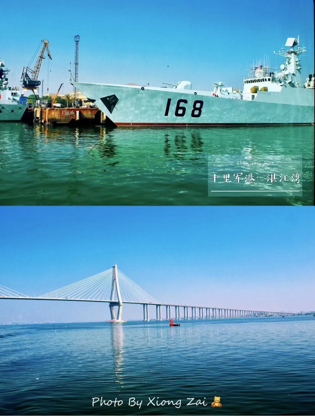 乘坐粤西最大、最豪华的【红嘴鸥号•观光游船】(船票自理168元、游览时间约90分钟),畅游有香港“维多利亚”之称的集军港、商港、油港、货港于一体的湛江亿吨级港口,十万吨泊位的港湾风光【十里军港】,这里是电影《红海行动》撤侨、军舰和海港码头等的取景拍摄地。海面碧蓝如玉,波澜壮阔,渔帆点点,巨轮争流,海鸟掠浪飞翔,码头吊机呼啸。