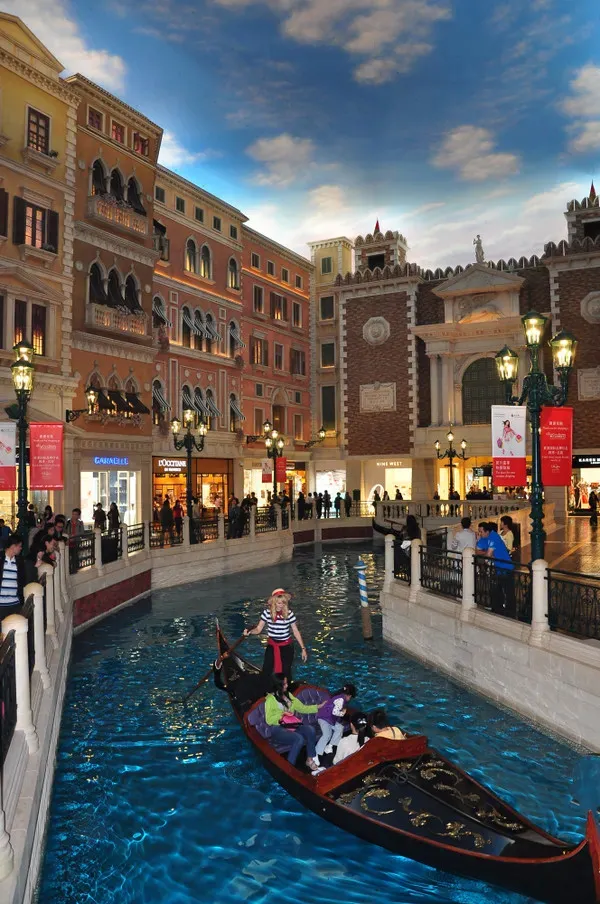 澳门威尼斯人是澳门著名的度假娱乐圣地。世界首创的人造天空,澳门威尼斯人大运河购物中心3楼楼顶被制作成一幅偌大的人造天空画面(天幕),营造出一年365天都是晴天的神奇景观。
