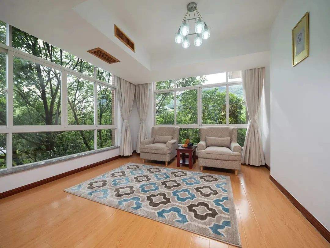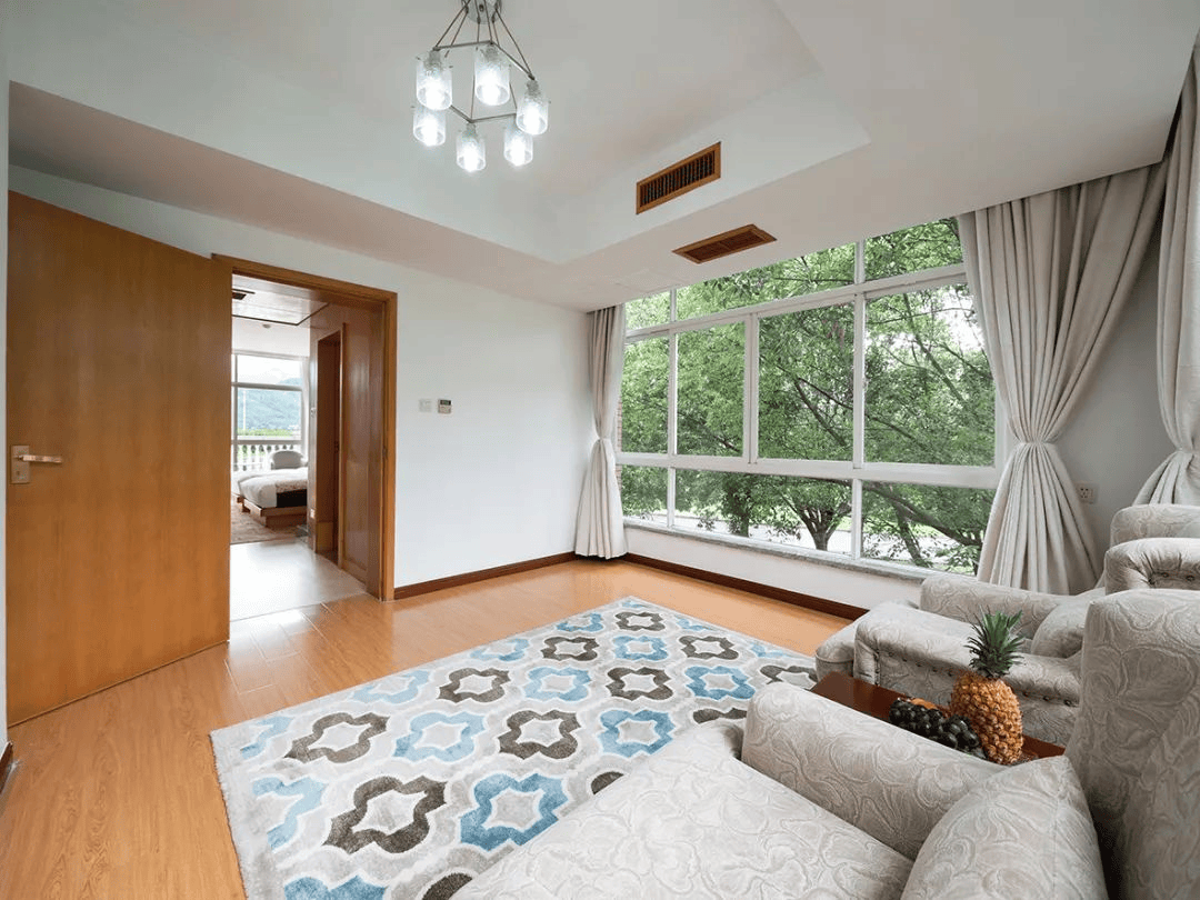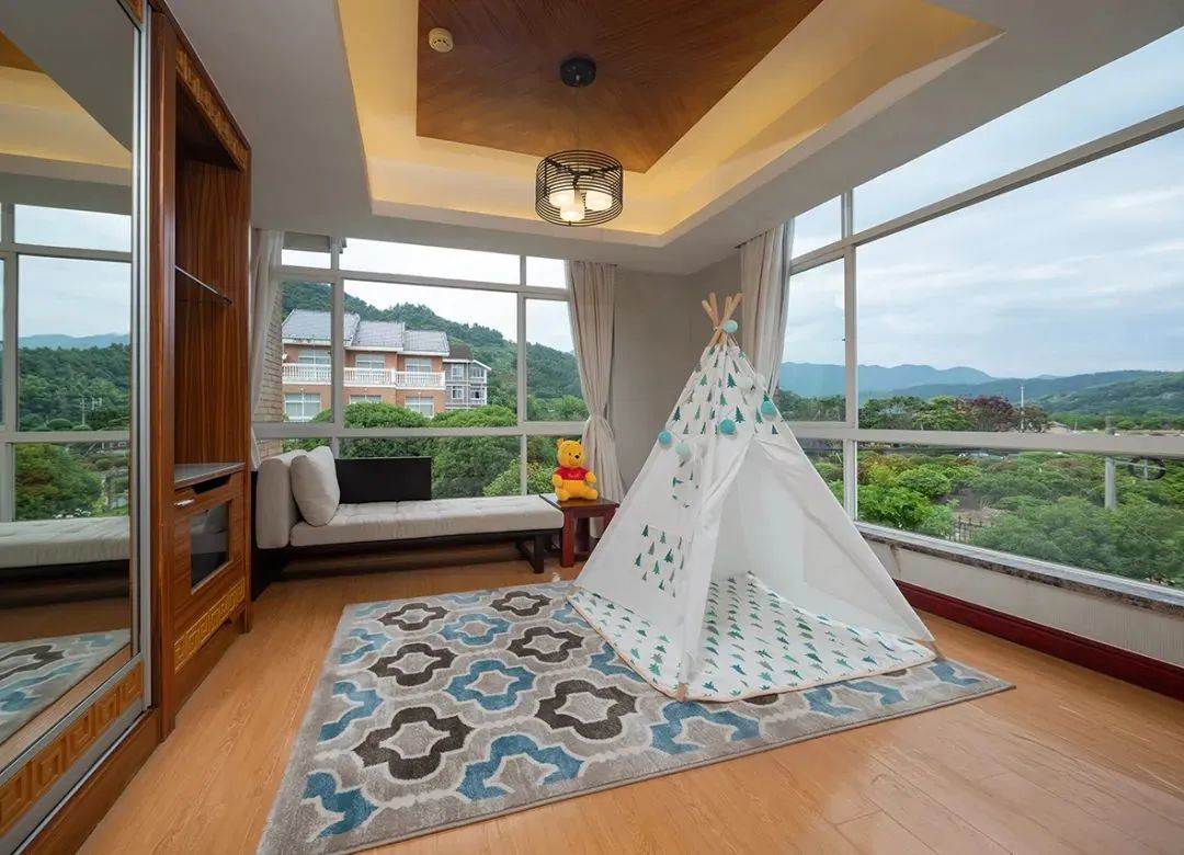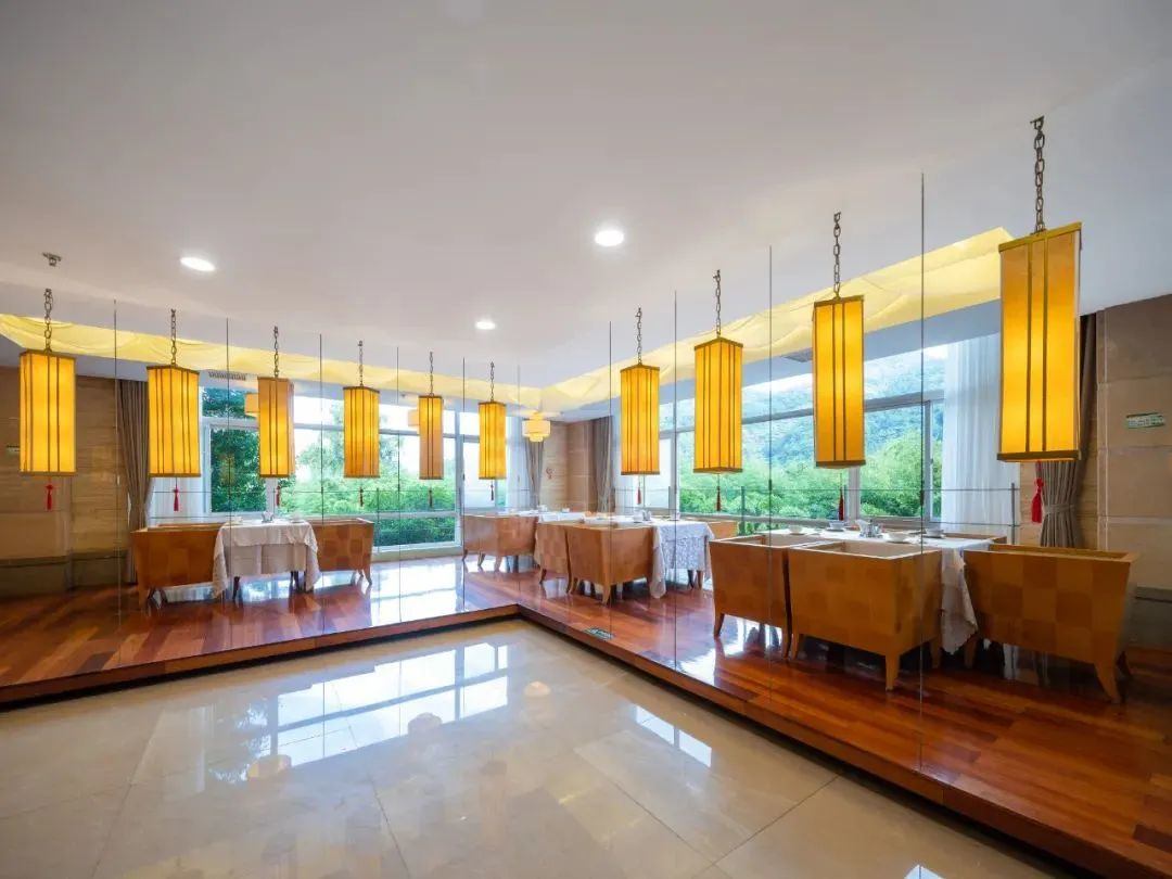 创意的布局营造独特的氛围,全幅观景窗透出华美山水,俯览窗外涓涓细流的剡溪,尽收眼底的全是山水美景。