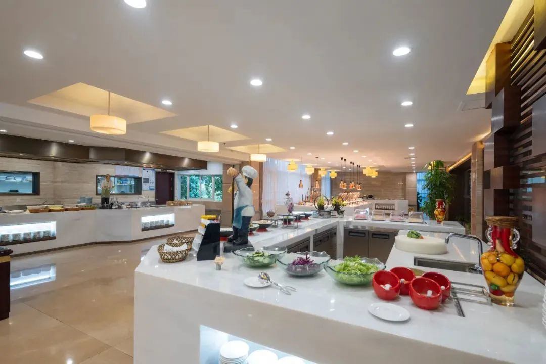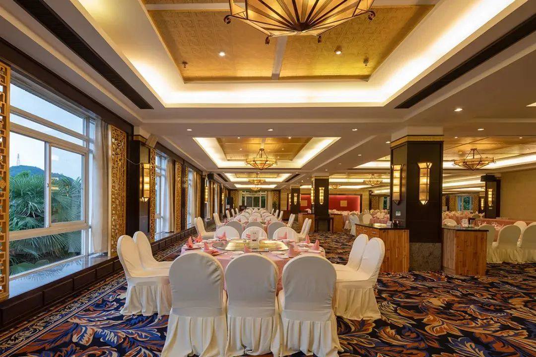酒店拥有中、西餐厅、中正厅、美龄阁、景观酒吧、大堂吧、多功能厅以及18个豪华餐饮包厢,可同时容纳1000人以上就餐。是举办大型活动,中西婚礼庆典的最佳场所。
