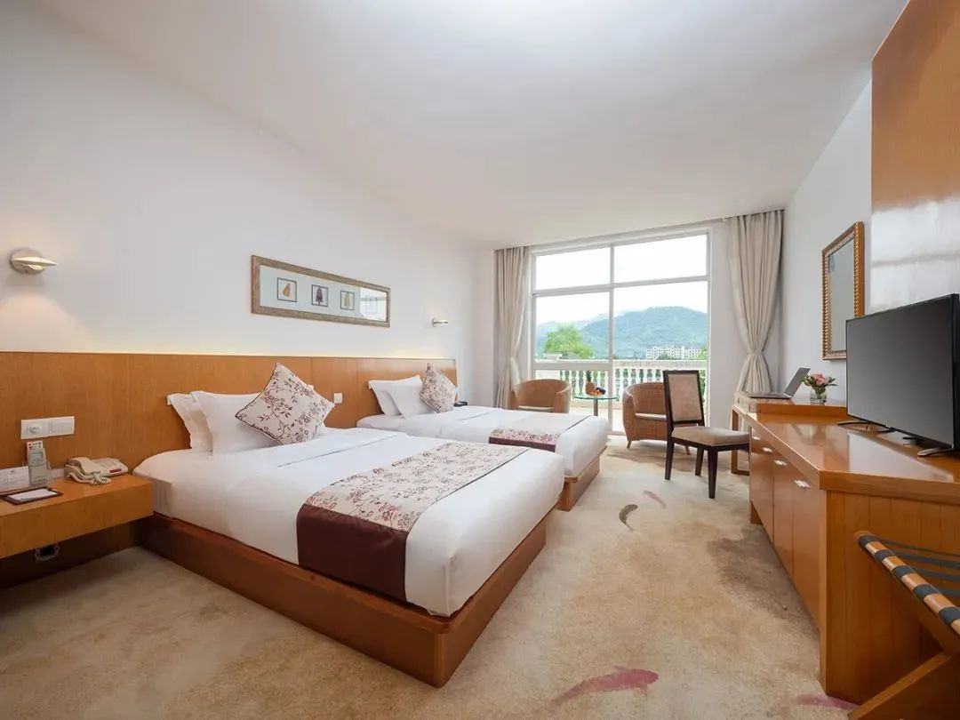 溪口银凤酒店拥有宽敞明亮和带有露天阳台的客房277间,包括主楼、4栋景观楼和12栋酒店别墅。
