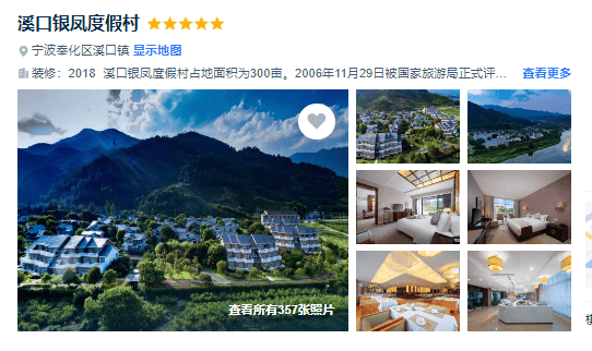 【宁波溪口银凤度假村】位于浙江省宁波市溪口国家AAAAA级旅游风景区内,占地面积近300亩,是一家具备客房、餐饮、会议等功能和特色康体、健身休闲项目的挂牌五星级旅游度假酒店。