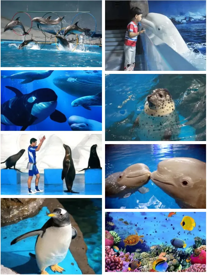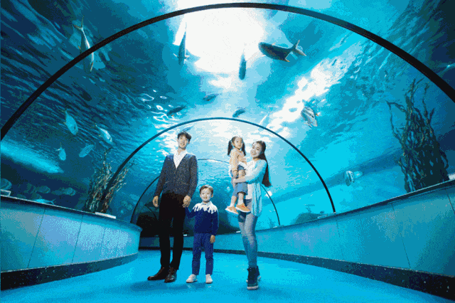 这里拥有36个展馆,是目前国内品种最全、数量最多的海龟、鲨鱼、伪虎鲸、白鲸、海象、海獭、海豚等珍稀的极地动物和海洋动物,可以带孩子一起欣赏海洋动物们的表演,跟动物们亲密接触,与家人共度欢乐时光。