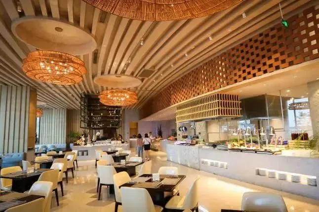 这里不仅是普通的超五星酒店,更是一个殿堂级度假区,客人可穿着浴袍和自己的小伙伴们一起到美丽的【灵山湾海水浴场】自由活动,3万米金沙、千倾碧波、嬉水踏浪、拾贝壳、捉小蟹、与自然融入一体。