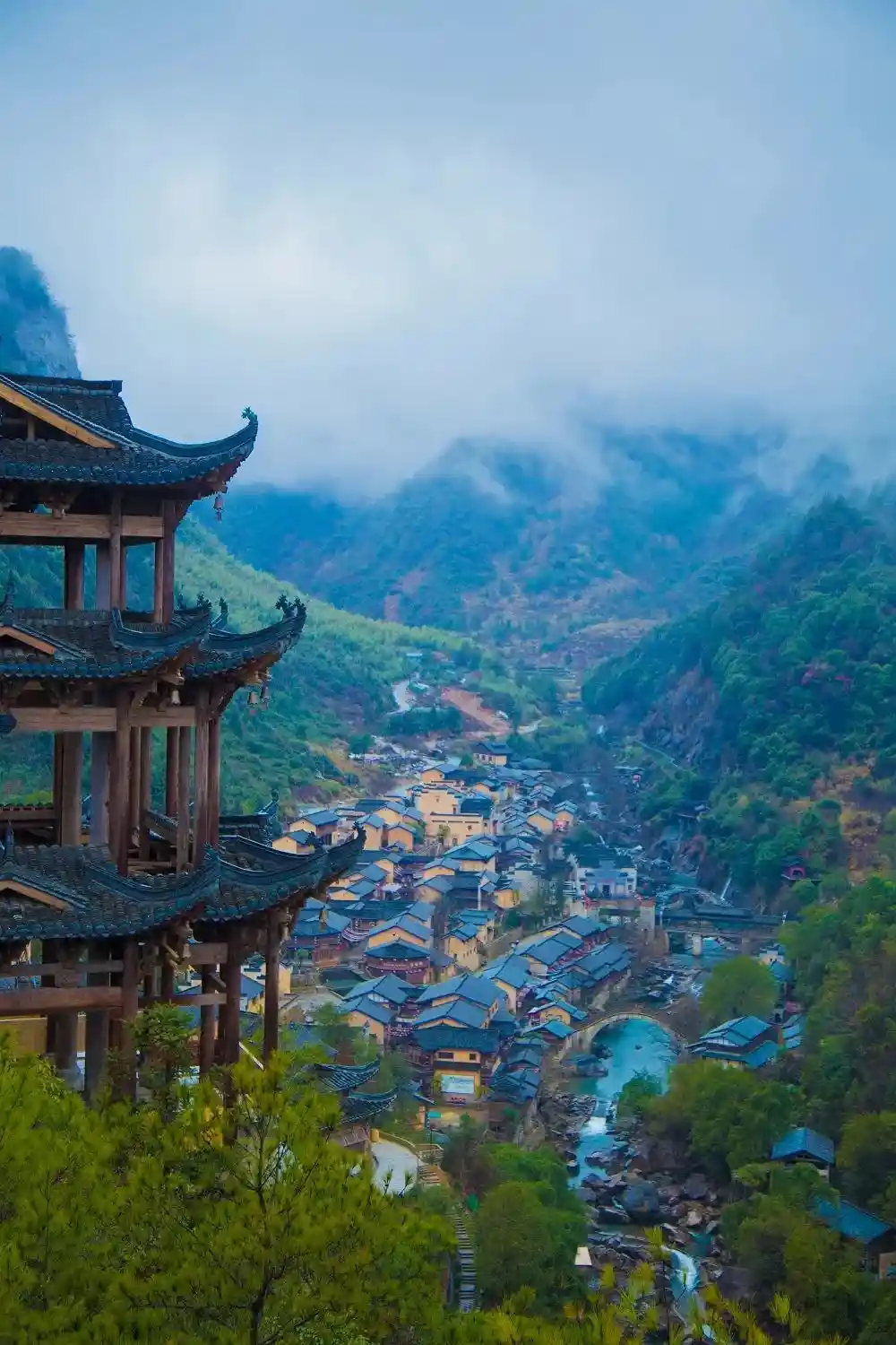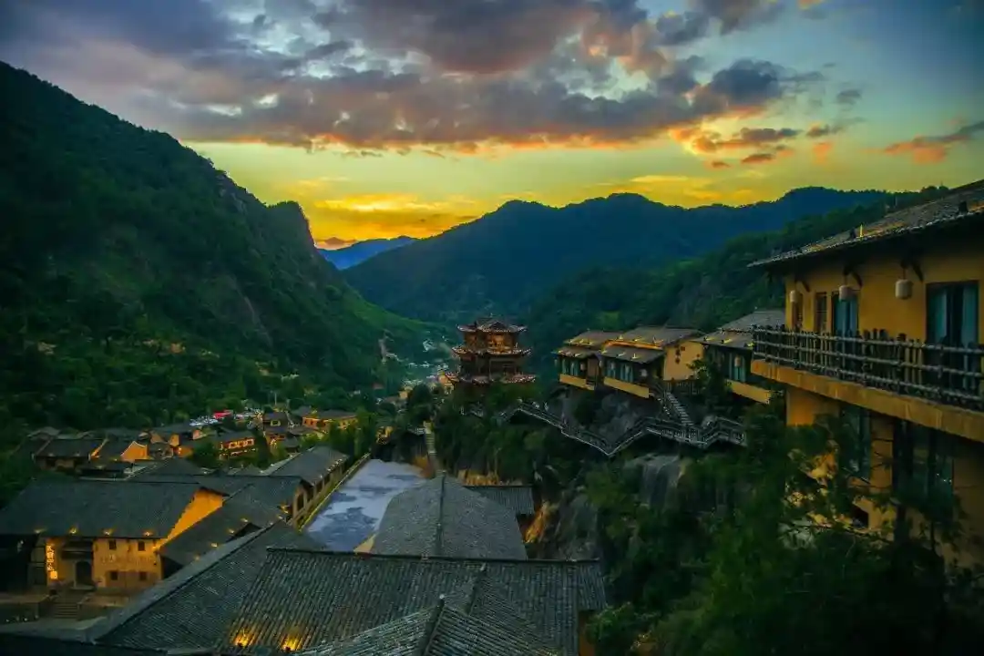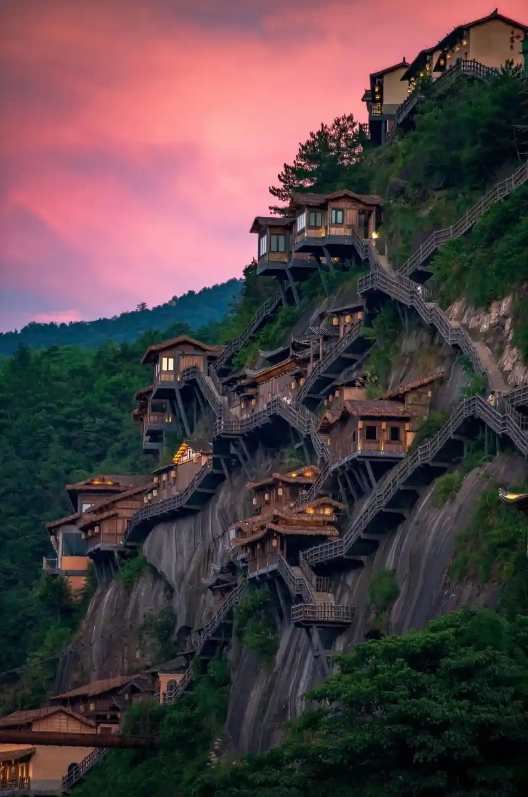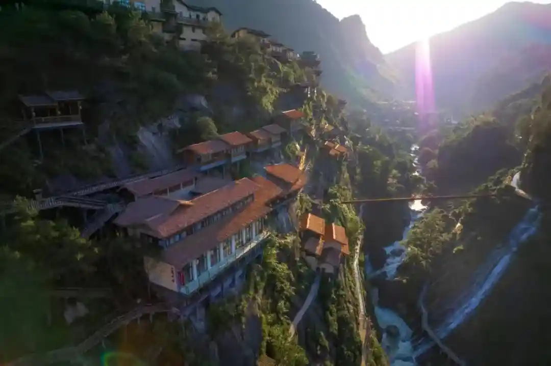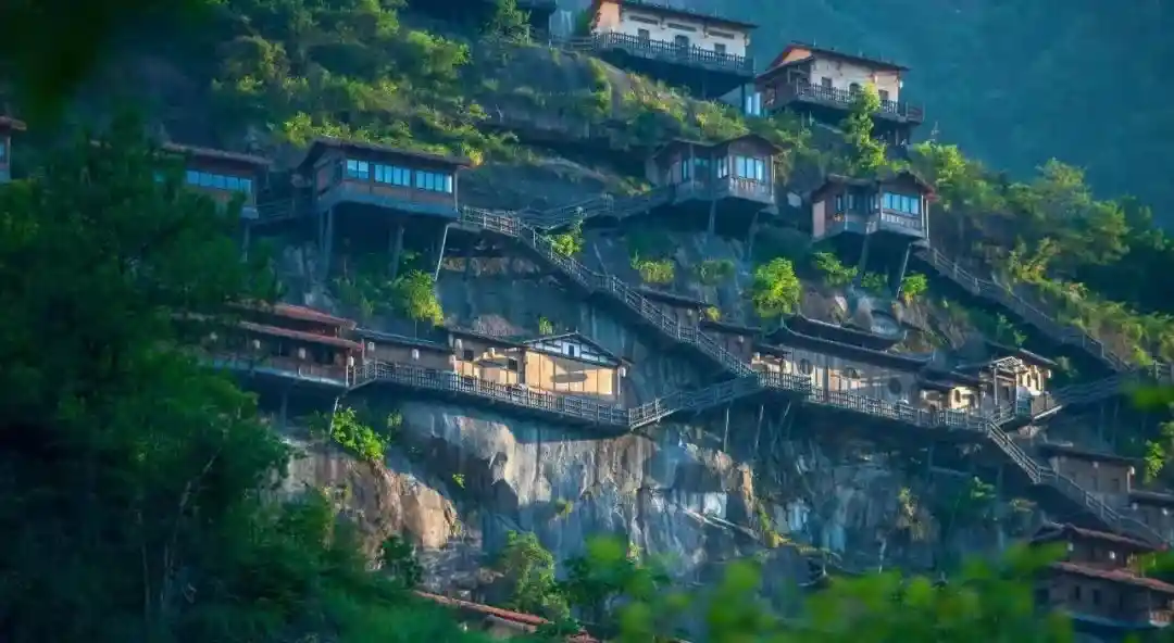 在悬崖峭壁上建了一个神仙小镇。