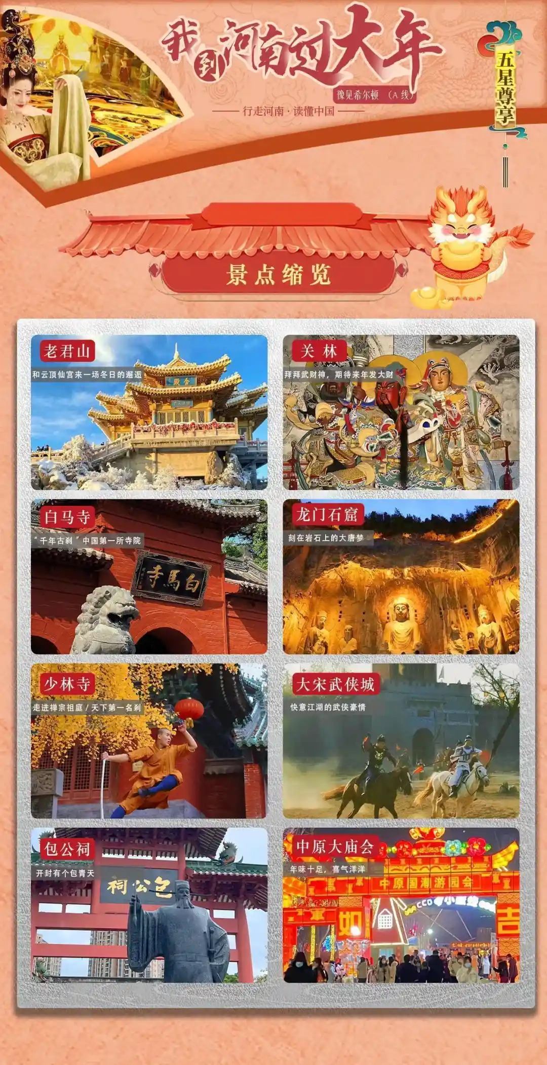 龙门石窟、少林寺、大宋武侠城、包公祠5日游