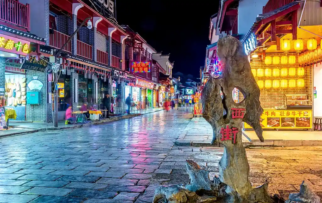 自由闲逛阳朔西街,它是一条有着1400多年历史的老街,很有古典韵味。由于外国人多,有很多西餐厅和英文招牌,这里也被称为“洋人街”。(自由活动期间无司机、导游陪同)