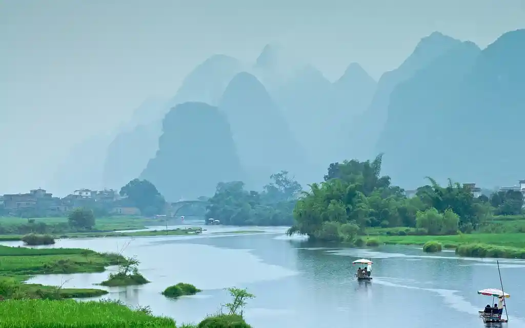 上午:草坪电动静音竹筏游漓江(游览约60分钟)