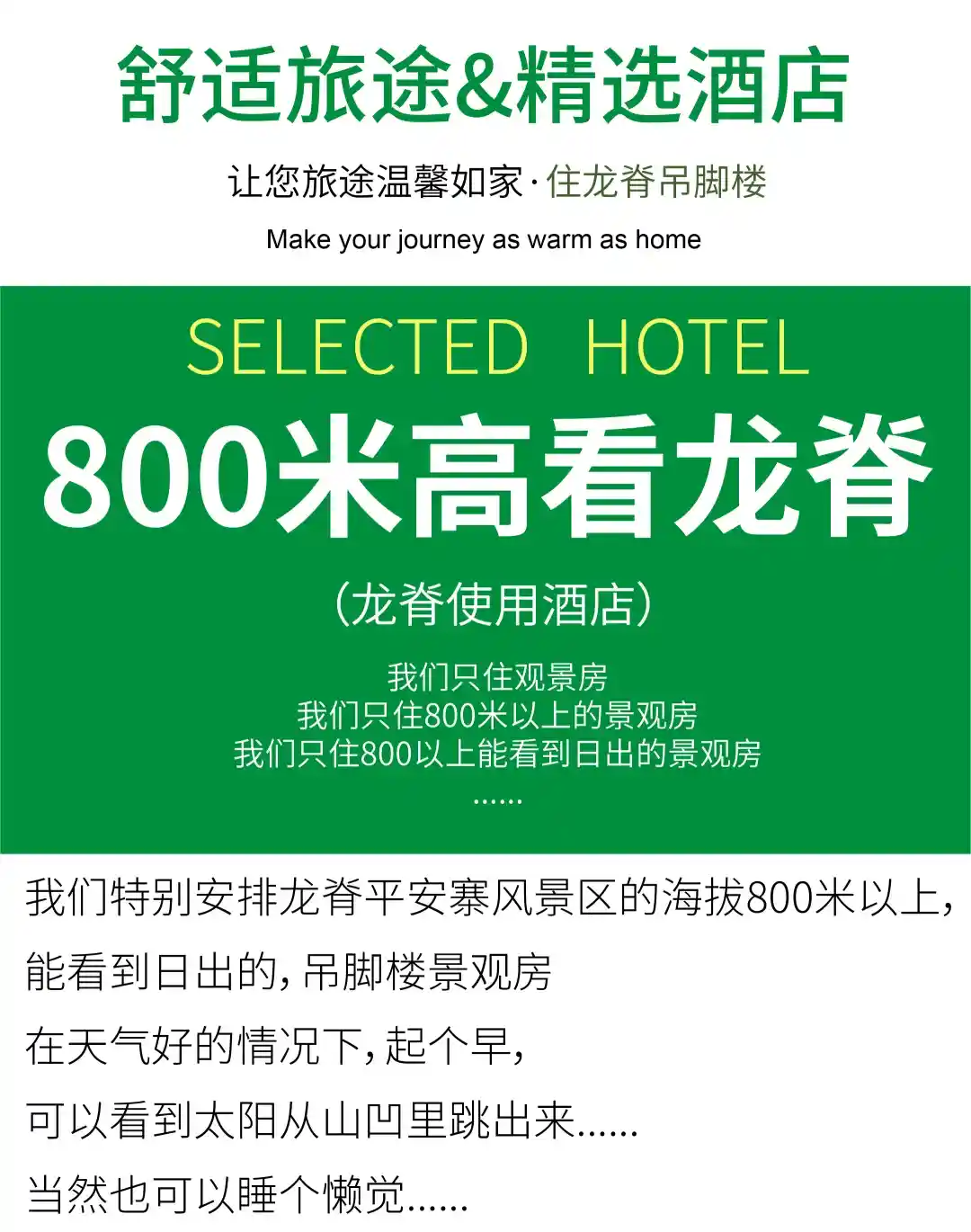画重点,精华部分开始了:之后乘车赴龙胜龙脊梯田(车程约120分钟),入住可以看日出的吊脚楼景观房。
