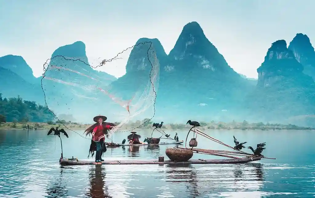 独家定制环节:为了让我们尊贵的客人亲近原味的山水风光和风土人情,我们特意安排了竹排鱼鹰老爷爷与大家合影,以20元人民币为背景,以鱼鹰老爷爷及竹排为素材,与您同框出现,留下美好纪念!