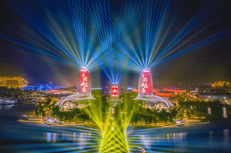 【海花岛灯光秀】:欣赏顶级声光电技术打造的光影盛宴,绚丽夺目的灯光与美轮美奂的建筑交相辉映,灯光璀璨、流光溢彩。(表演时间及地点以当天景区对外公布为准)。