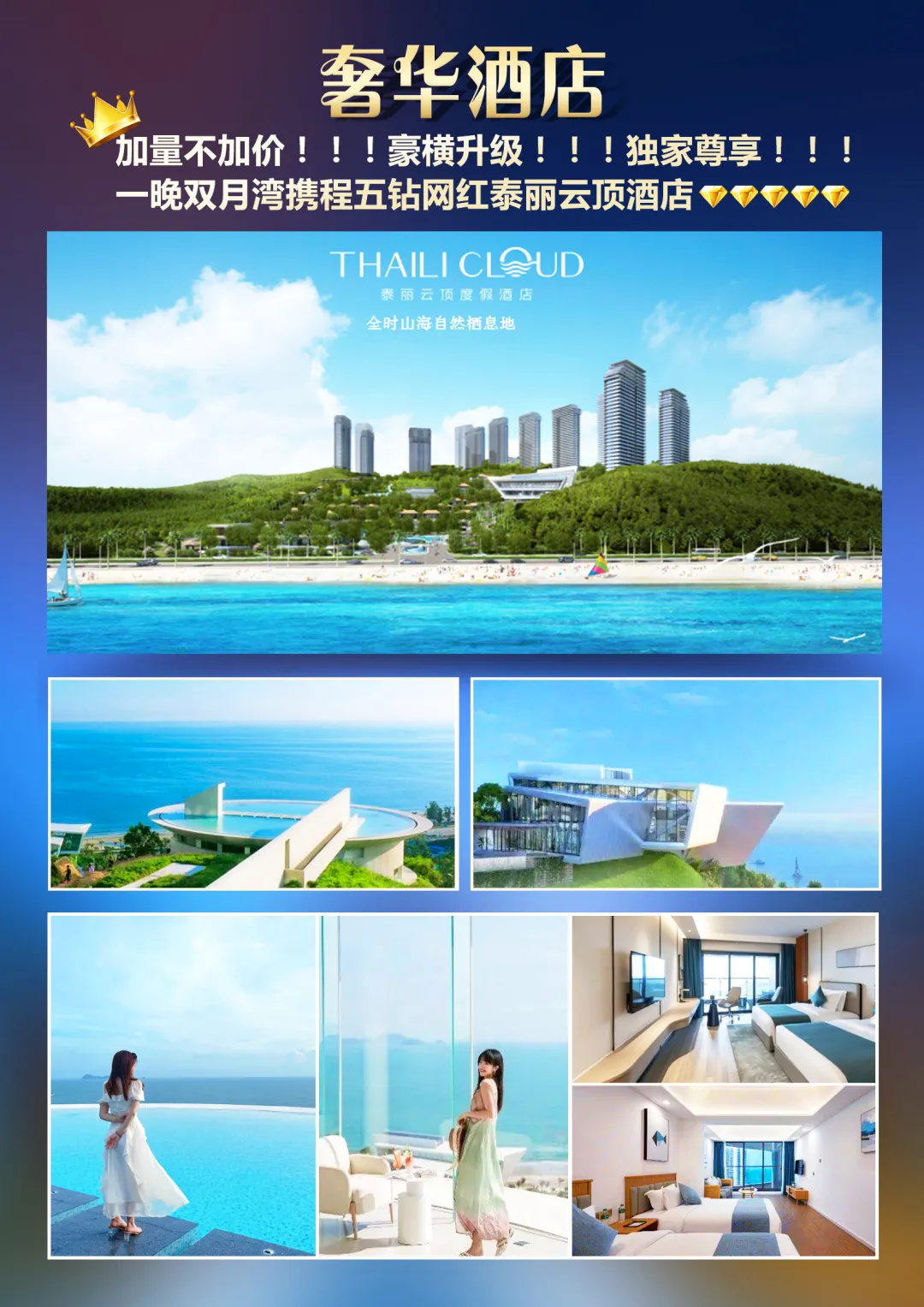 4.住宿:当地5晚经济型住宿,海边双月湾指定入住一晚携程5钻泰丽云顶度假酒店。