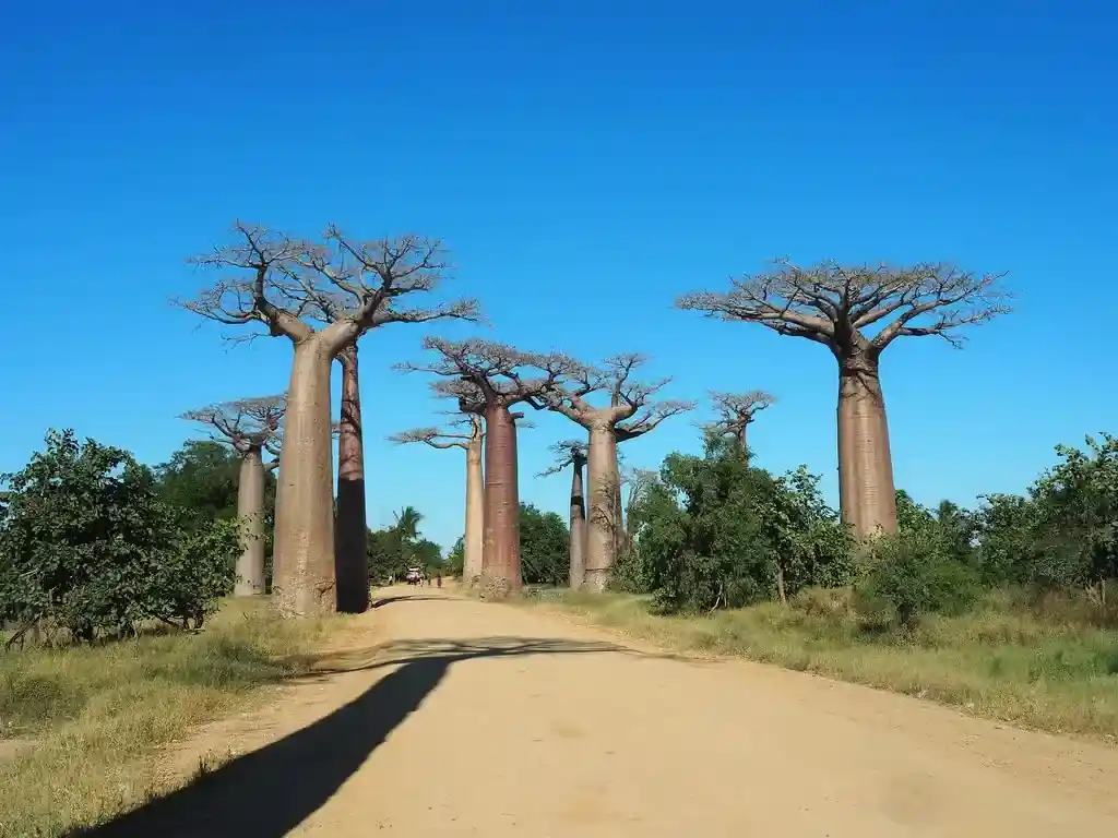 早餐后驱车西行,抵达河滨小城Miandrivazo,一路欣赏变化显著的风景,下午到达马国最著名的景区--猴面包树大道,此路两旁长满了800多年树龄,30多米高的珍稀树种——猴面包树,在这里还能发现传奇的“情人猴面包树”,两颗粗壮的树干缠绵拥抱在一起向天伸展,吸引着世界各国游客千里迢迢前来许愿。在猴面包树稀树草原欣赏壮观的日落会是您人生中一次难忘的经历。随后抵达穆隆达瓦入住酒店休息。