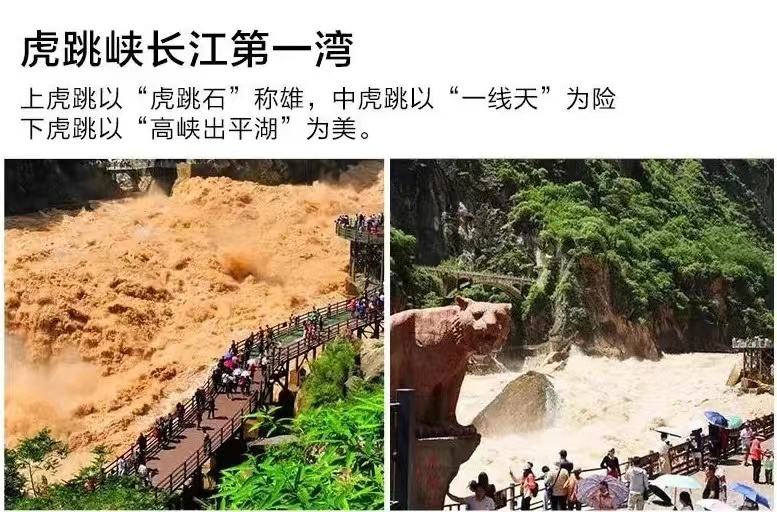 酒店早餐后,乘车前往消失的地平线香格里拉(香格里拉表达的意思是接近天堂的地方)圣地,途经【长江第一湾】停车拍照约15分钟,乘车前往虎跳峡,前往有世界峡谷之最之称-【虎跳峡】(温馨提示:游览时间90分钟,虎跳峡是世界上著名的大峡谷, 也是中国最深的峡谷之一,以“险”而闻名天下)。