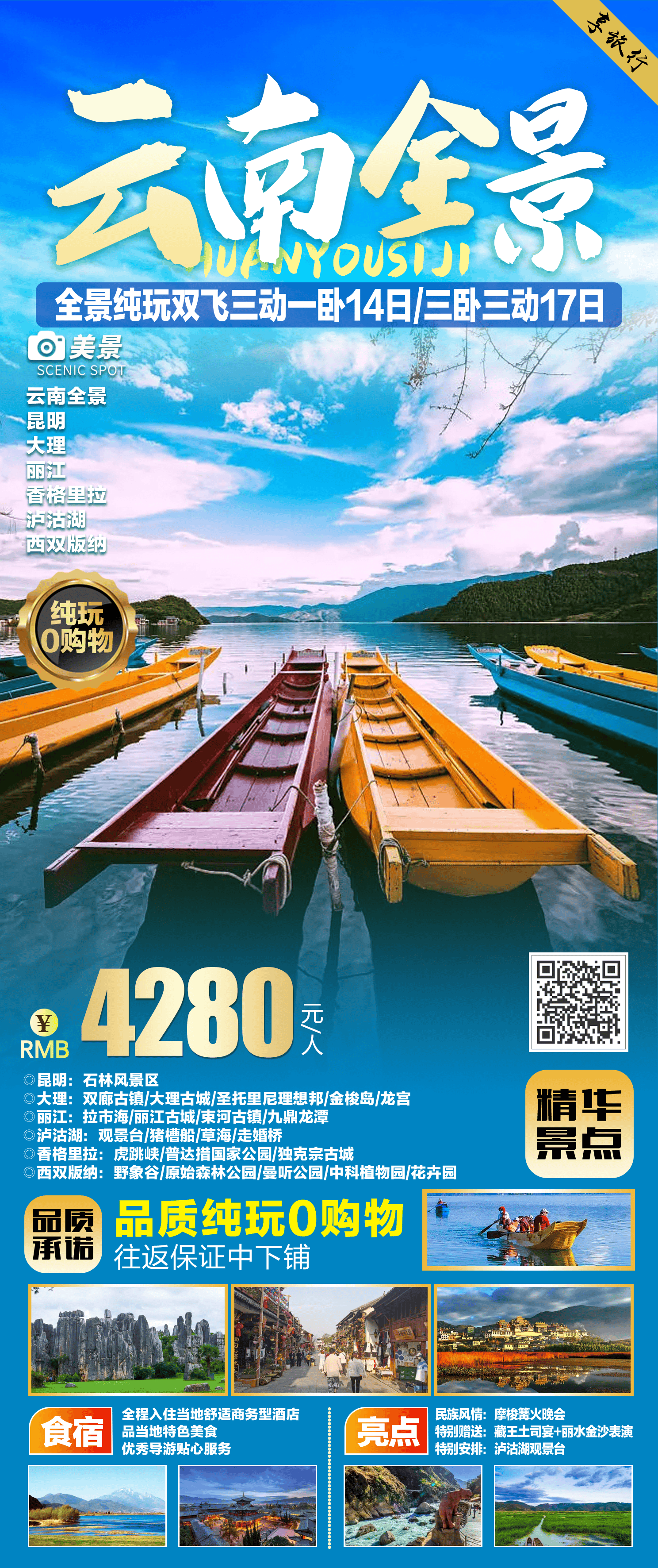 【环游四季·云南全景】昆明 大理 丽江 香格里拉 泸沽湖 西双版纳 全景纯玩双飞三动一卧十四日/三卧三动十七日游