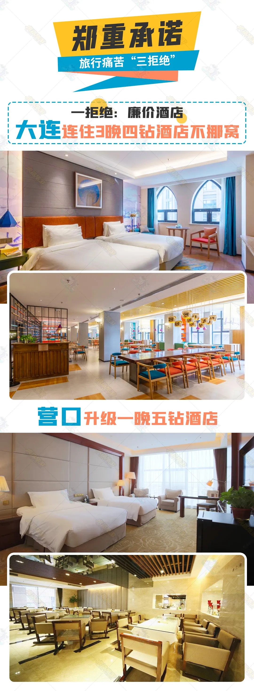 【住 宿】全程入住3晚大连市区酒店+1晚营口酒店双标间;