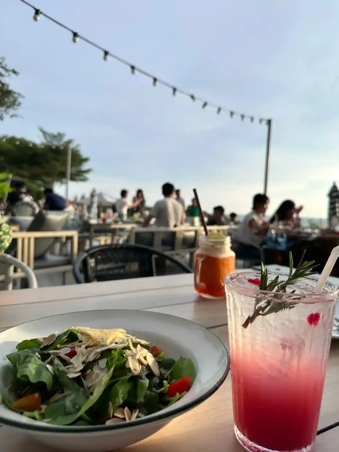 【悬崖餐厅下午茶】清风晚霞,在落日余晖的映照下,面朝大海月光与霞光交相呼应,品尝着下午茶,好生惬意,客人自付。