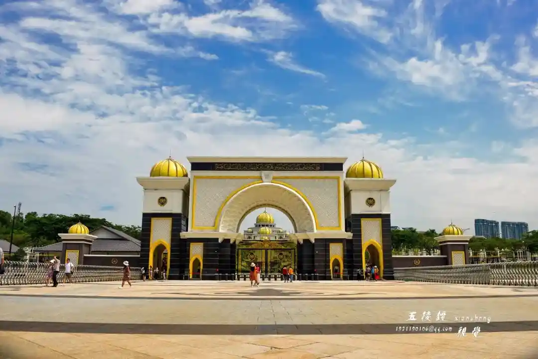 【新国家皇宫】马来西亚国家皇宫坐落于皇宫路的一座山丘上,市中心之旁,其内青草遍地,鲜花满园盛开,许多宫室应酬、宴会和庆典活动 也在此进行。(因皇室住所不可入内,游览约 10 分钟)
