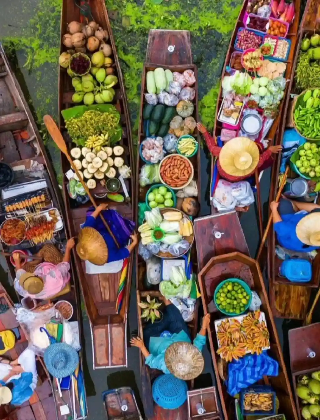 【杜拉拉水上市场】水上市场里水路纵横,水面上木楼别具风格。在水市里既可以吃到来到泰国各地的风味小吃,也可以买到产自于泰国各地方的特产以及工艺品,更可以搭乘小木舟,在湖里荡漾,穿梭于桥亭之间,或是跑到湖中心最高处,坐上索道,飞驰下来,体验双脚掠过水面的刺激与凉意。