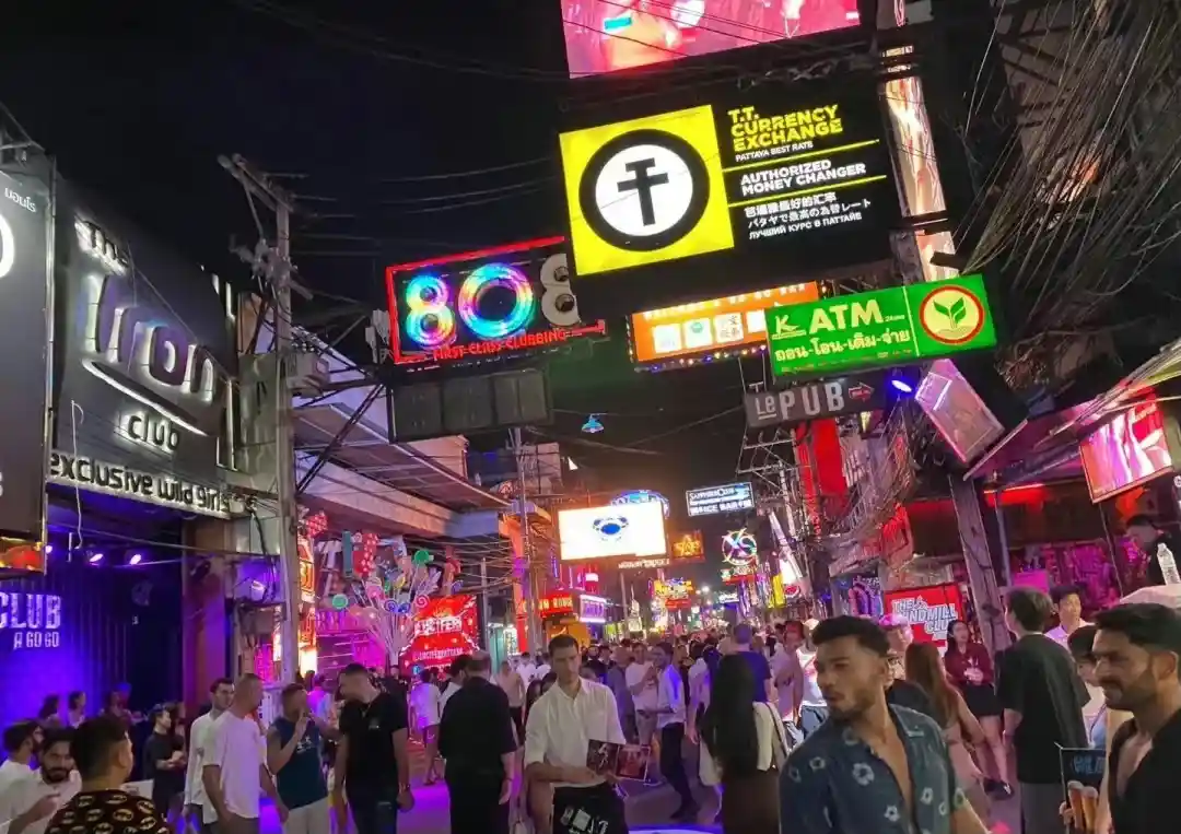 【芭提雅风月步行街】芭堤雅风月步行街两旁有各式小吃、酒吧,街上熙熙攘攘。在这里可以吃到便宜的海鲜大餐。酒吧中经常有音乐表演、泰拳表演。以霓虹灯和热闹程度论,这里可能远不如国内的一些知名步行街。两旁的电线杆和凌乱的电线,表现了街市建设的随意性。白天相对冷清,但一到晚上灯火通明,夜夜笙歌,还有很多Lady boy在跳舞,招揽游客,光怪陆离、无奇不有,这里是个一刻也不宁静的嘈杂世界。