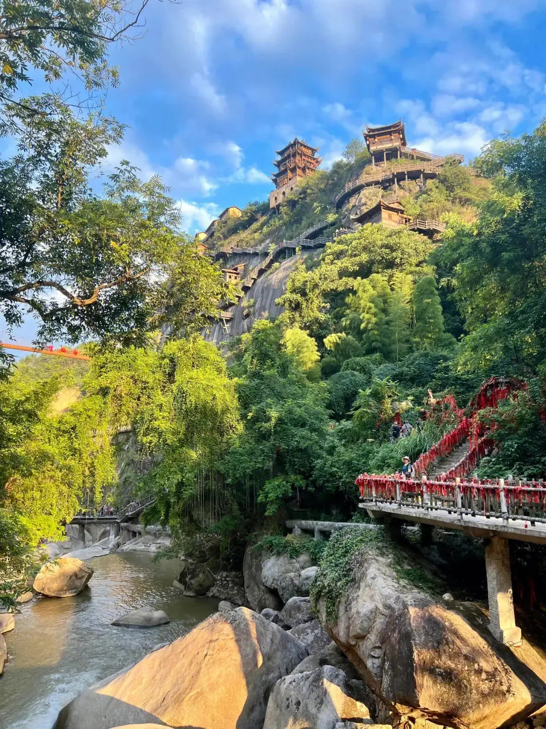 睡到自然醒,早餐后,前往国家 4A 级旅游景区【中华灵宝第一山·葛仙村风景区】赠送门票120元(索道:上行70.下行60=130元.自理)(游览3H)央视重点推荐景区、众多明星来游并推荐:“来葛仙山过几天神仙日子”,葛仙山是著名的道教名山,号称“中华灵宝第一山”。位于上饶市铅山县中部,系武夷山的支脉:站在主峰眺望四周,近观九条支脉如九条苍龙,盘旋腾跃,气势雄伟,人称“九龙窜顶”。葛仙山景区内的最高峰,海拔 1096.3 米,突出群山之上,清峻奇绝,群峰簇拥,是抒情揽胜的好地方。站在葛仙峰上,可揽四方云山,圭峰、黄岗山、鹅湖山、七星山、独竖尖,尽在视野之内。在此观看日出云海群山之巅,尤为荡气回肠,极尽壮观。前往游览-国家重点风景名胜区,AAAA级景区,【网红望仙谷景区】(门票60赠送,游览约4小时),游【青云桥】我们面前的这座桥叫青云桥,这是一座单拱钢结构大桥,跨度 35 米。大家一定会问,青云桥为什么是红色的?在青云桥这个位置,原来有一座木质的微拱桥,因为年份久远 已经毁坏了。微拱桥因为弧度小,走在上面好像走平地一样,不知 不觉中就来到了桥顶,有点“平步青云”的感觉,取这个好彩头, 就得名青云桥。【寻仙路】过了青云桥,再踏青云梯,从此鸿运当头。我们现在走的这条 栈道叫寻仙路,既有青石板路,也有峡谷栈道,顺应天然的地形, 曲折回转,蜿蜒在九牛峡谷之中。山里的步道从古至今用的都是这 种很粗糙的毛石,具有防滑的作用,这也是我们古代工匠智慧的体 现。栈道沿途鸟声啾啾,水声潺潺,四时之景也各有不同。【廊桥】沿河而建的这座建筑叫廊桥,是典型的江西风雨廊桥的形态, 桥体采用了抬梁式架构,在立柱上架梁,梁上又抬梁,层层叠落一 直到屋脊,各个梁头上再架上檩条同来承托屋椽,结构和工艺十分 复杂。【三叠水】前方的峡谷是两条溪交汇的地方,一条是发源于高南峰的西坑 溪,一条是发源于西高峰的方村溪。我们在这里可以看到独特的叠 水景观——三叠水。峡谷里的水自上流下,遇上了高高低低、长长 短短的石阶,就产生了形式不同、水量不同、水声各异的叠水景 观。【白鹤崖】大家看前方远处的这块巨大的石头,这就是白鹤崖了。望仙谷 的传奇故事就是从这里开始的。现在让我来为大家从头说起。大家都听过我们的上古传说“女娲补天”的故事。共工和祝融 撞倒了不周山,天破了个大窟窿,女娲修炼五彩石去补天。在补天 的过程中,有一些补天石掉落了下来,其中一块就砸在上饶这个地 方,砸出了灵山,所以灵山的整个山体是环形的,像一个陨石坑, 大家打开手机里的地图去看卫星图片都能看到。后入住酒店休息!