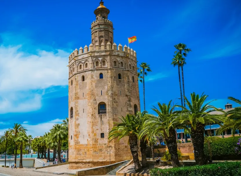 【黄金塔】黄金塔是塞维利亚辉煌的航海史的见证,因以金色瓷砖贴面而得名,现在虽然瓷砖已经没有了,但在斜阳下仍显得金光闪闪。