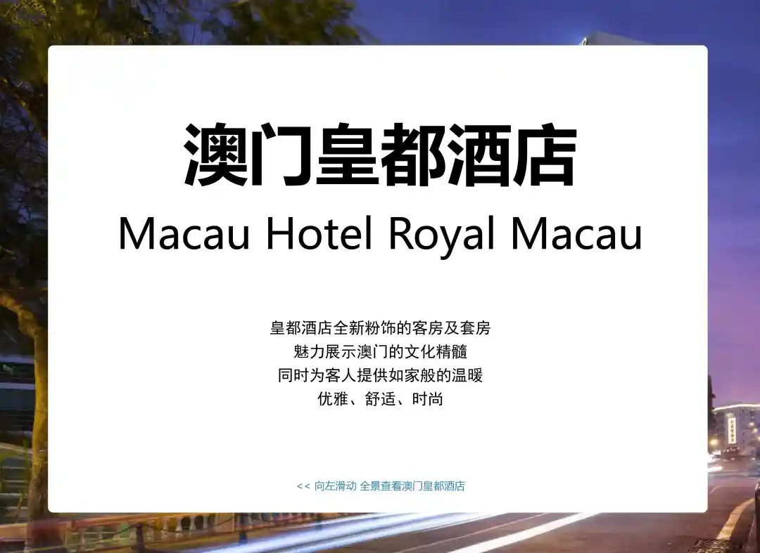 皇都酒店全新粉饰的客房及套房,魅力展示澳门的文化精髓,同时为客人提供如家般的温暖。优雅、舒适、时尚,皇都酒店所有房间均备有先进的设施、匠心独蕴的功能性设计以及细緻体贴的酒店服务。设有房内餐饮服务,让您能舒适地品嚐酒店厨师精心泡製的佳餚。无论是休閒抑或商务旅客,这裡是让您在五光十色的都市中,充份舒展身心的绿州。