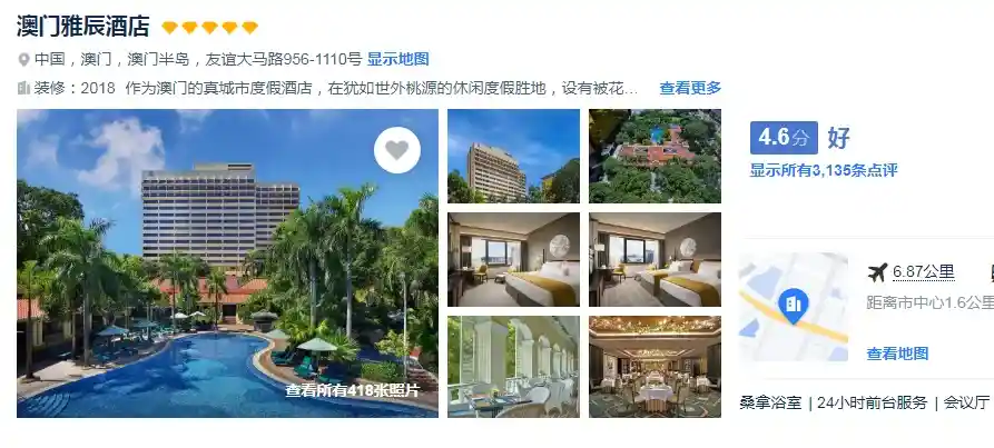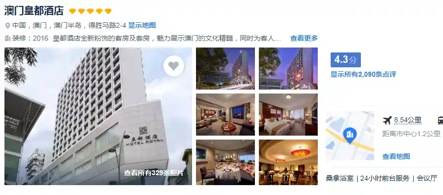 【住宿】全程3/4晚网评五钻酒店标间(澳门葡京酒店/澳门皇都酒店/澳门雅辰酒店)均为净房不含早餐