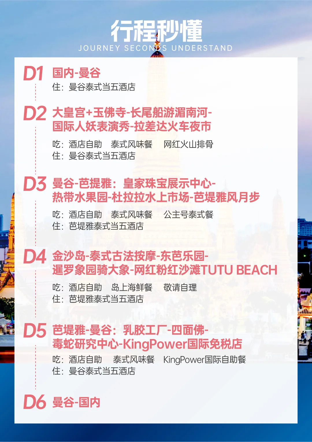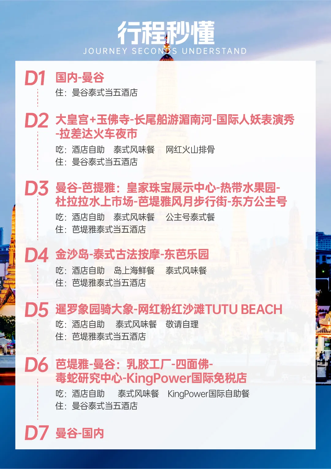6晚7天(多一天自由活动或酌情调整行程到此天)