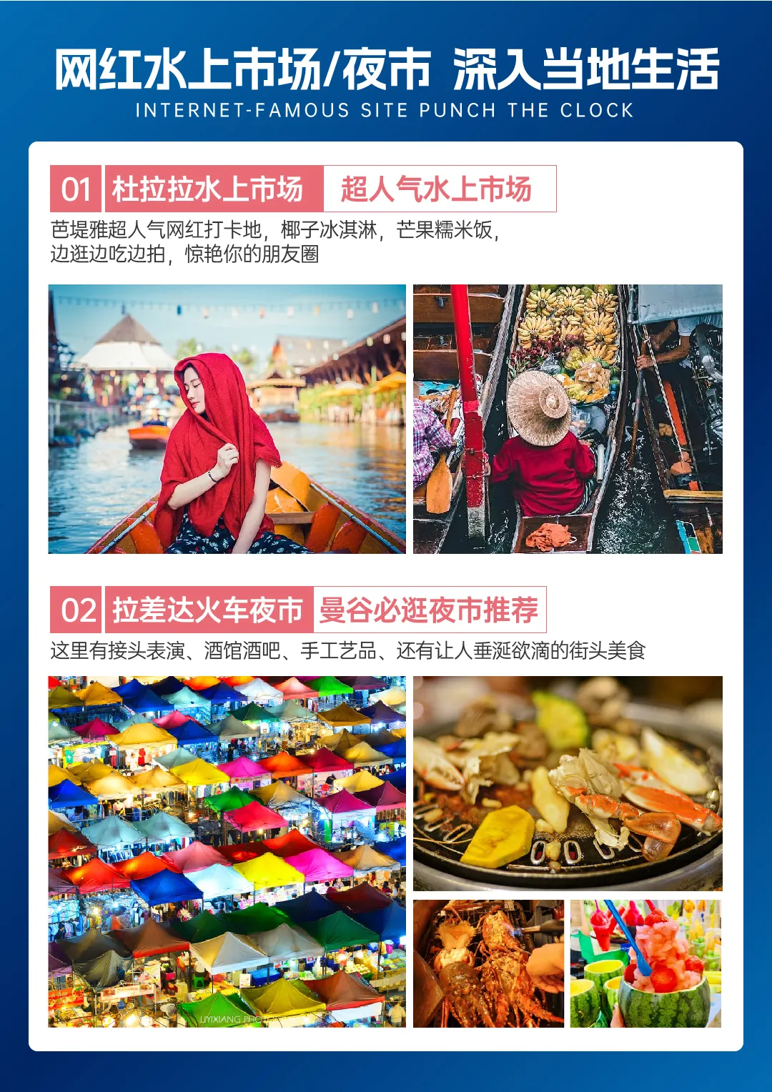 【杜拉拉水上市场】位于泰国芭堤雅的水上部落,又称四部水乡,因电影《杜拉拉升职记》在此拍摄而走红。水上市场水路纵横,泰式风情木楼别具一格,在这里既可以吃到来自泰国各地的风味小吃,也可以买到各种特产及工艺品。