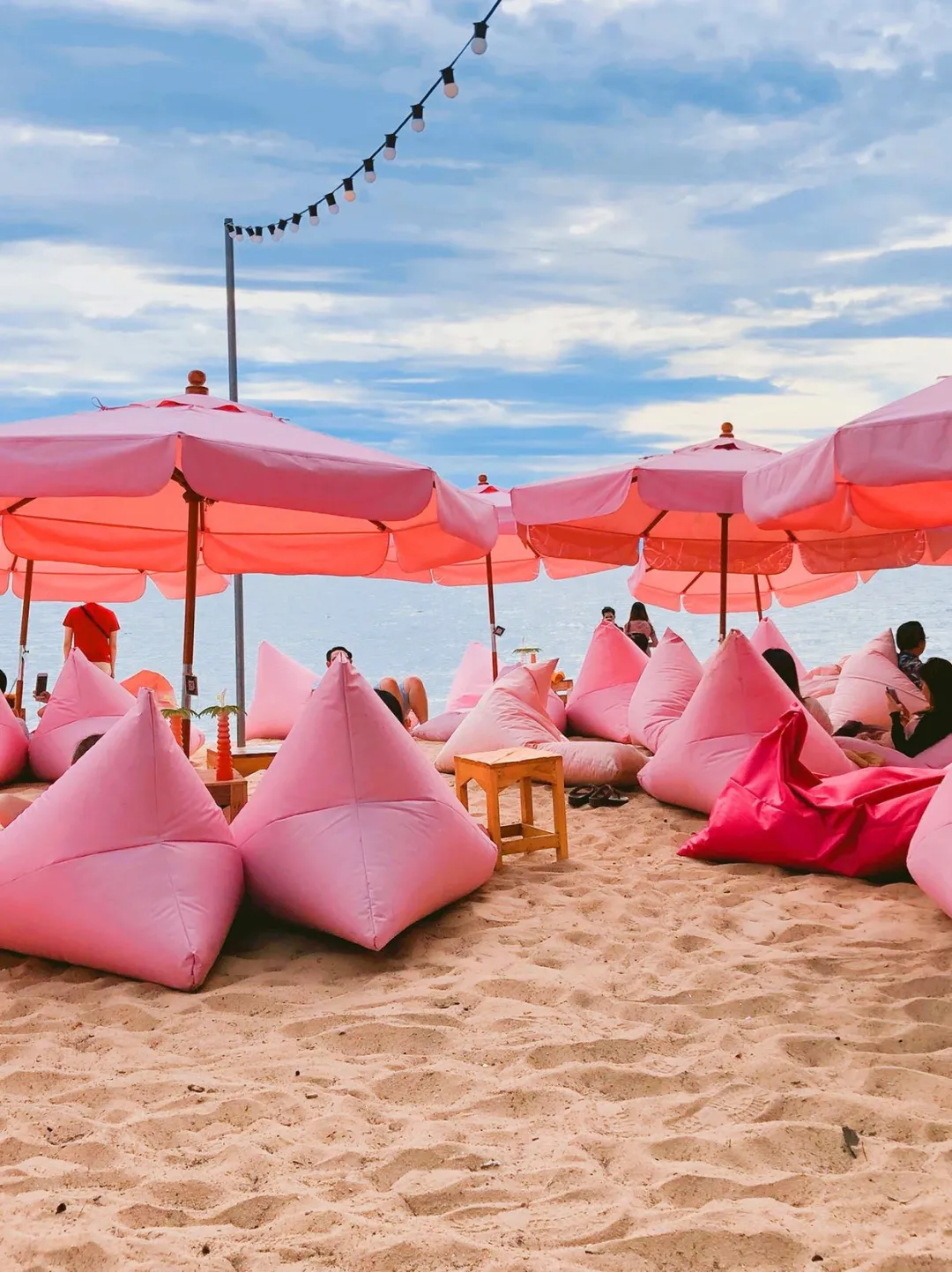 【粉红沙滩TUTU BEACH】新晋网红景点,从遮阳伞到懒人沙发、甜品和饮品都是粉色的,满满的夏威夷风情。走进这里,一秒回到童话世界,吹着海风,看着海浪,跟朋友聊天,好不惬意~