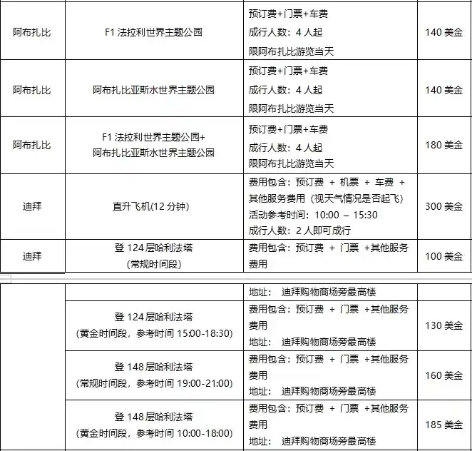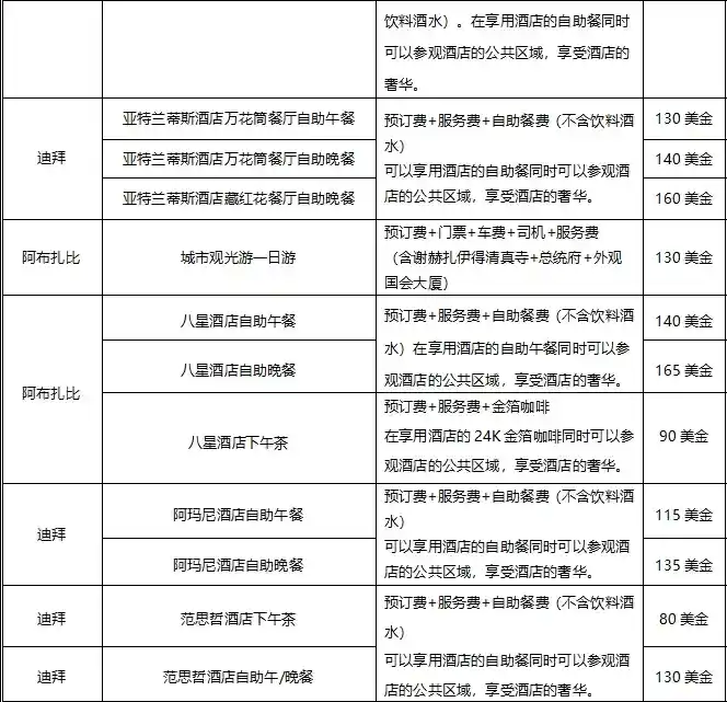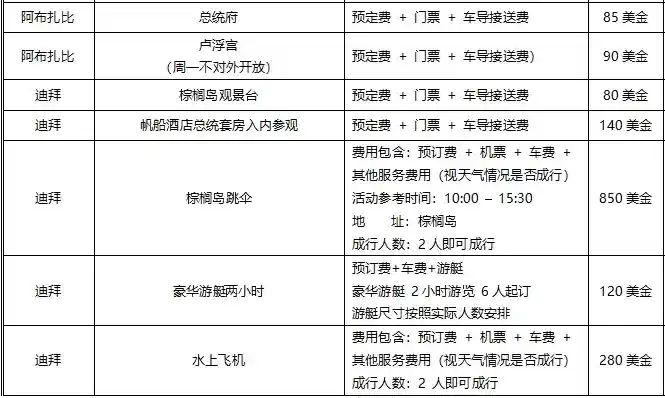 L. 行程酒店不含阿联酋旅游税,阿布扎比酒店4美金/间/夜;迪拜酒店5美金/间/夜。