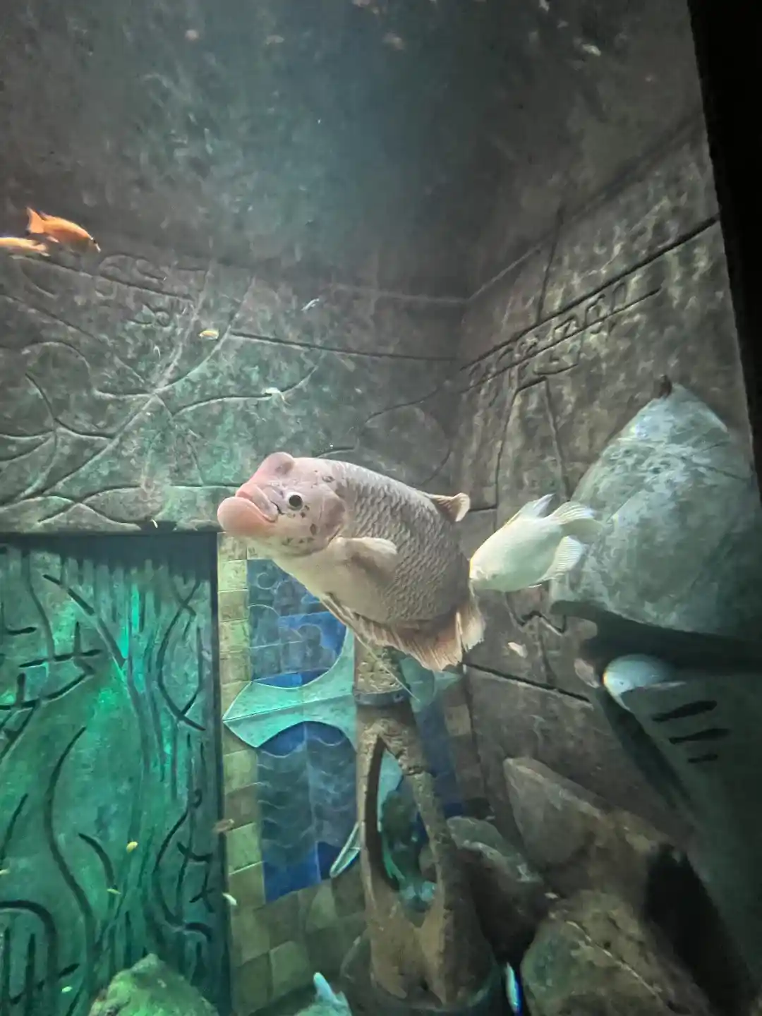 随后进入参观亚特兰蒂斯酒店【“失落的空间”水族馆】,在棕榈岛亚特兰蒂斯(Atlantis the Palm)酒店中的“失落的空间”水族馆(The Lost Chambers Aquarium)里,你将穿行在四周环绕着各种海洋生物的玻璃隧道中,在迷人的水下世界遇见鲨鱼、黄貂鱼、水虎鱼、龙虾和极小的海马等等。 水下隧道按照亚特兰蒂斯失落之城的主题设计,高度再现由船骸和废墟构成的失落文明;在这里,你将在十大美丽房间中遇见最令人惊异、且最色彩斑斓的水下生物组合。 在这座水族馆中,有20多种海洋生物展品,还有一处触摸箱,你可以在里面捡到海星或是抚摸海参。如果你很想知道海鳝究竟是一种蛇还是一种鱼,或者想知道如何辨别石斑鱼的性别,那么请登记参加幕后之旅活动,与水族馆的动物专家们一起揭晓海底深处的奥秘,亲自了解鱼类医院、水过滤系统以及其它有关如何饲养65,000多种海洋动物的趣闻。最令人期待的是,你甚至还有机会亲自给一些海洋生物喂食。 Tips: 在纪念品商店可以买到非常可爱的海洋生物毛绒玩具。