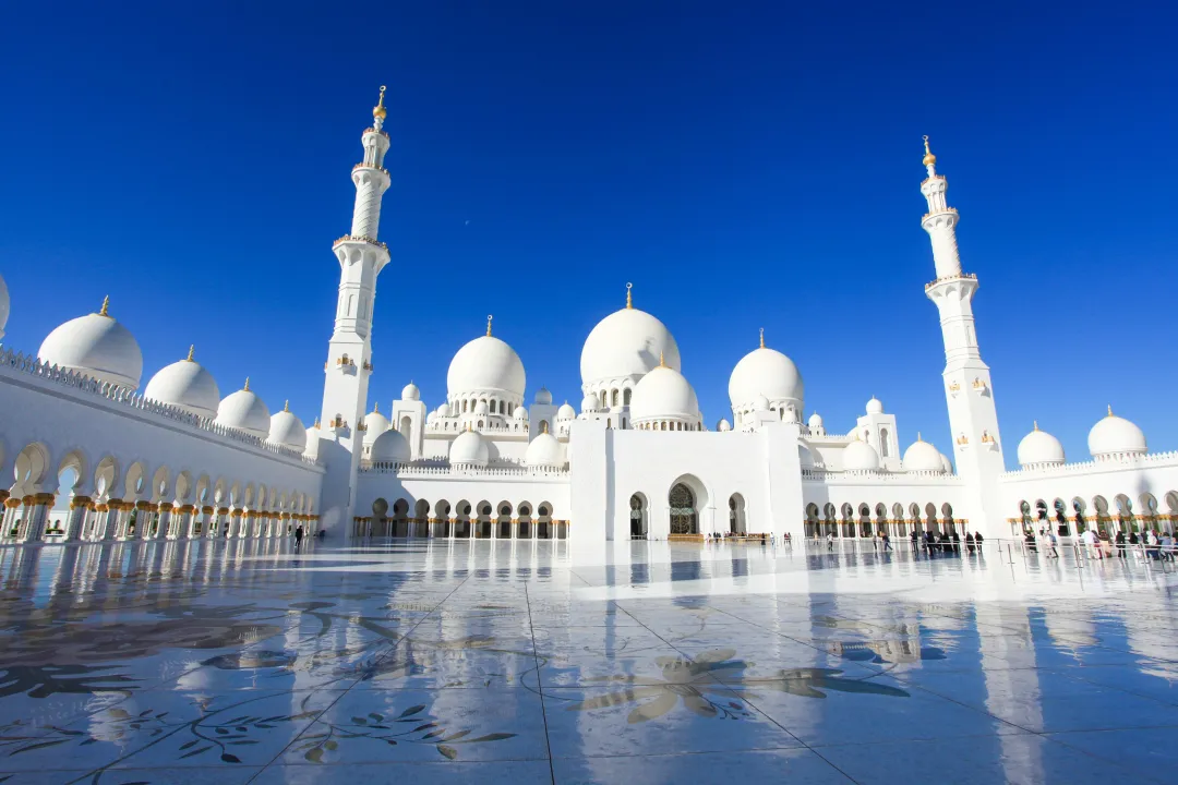 抵达阿布扎比后,前往参观阿布扎比大清真寺【谢赫扎耶德清真寺】【注:谢赫扎伊德清真寺入内参观时男士需穿着有领衬衫及长裤,女士不能穿露肩的上衣及短裙,因此,如有客人要求入内参观,(请客人提前准备合格服装,以免到时不能入内参观 ,此景点为免费开放;如遇朝拜或休息日只可外观,不可入内参观,不退费用;或行程先后顺序调整),但因礼拜日或其他公众原因将不允许对外参观】(20-30分钟),(每周周五为穆斯林朝拜日,改为下午17:00前往)
