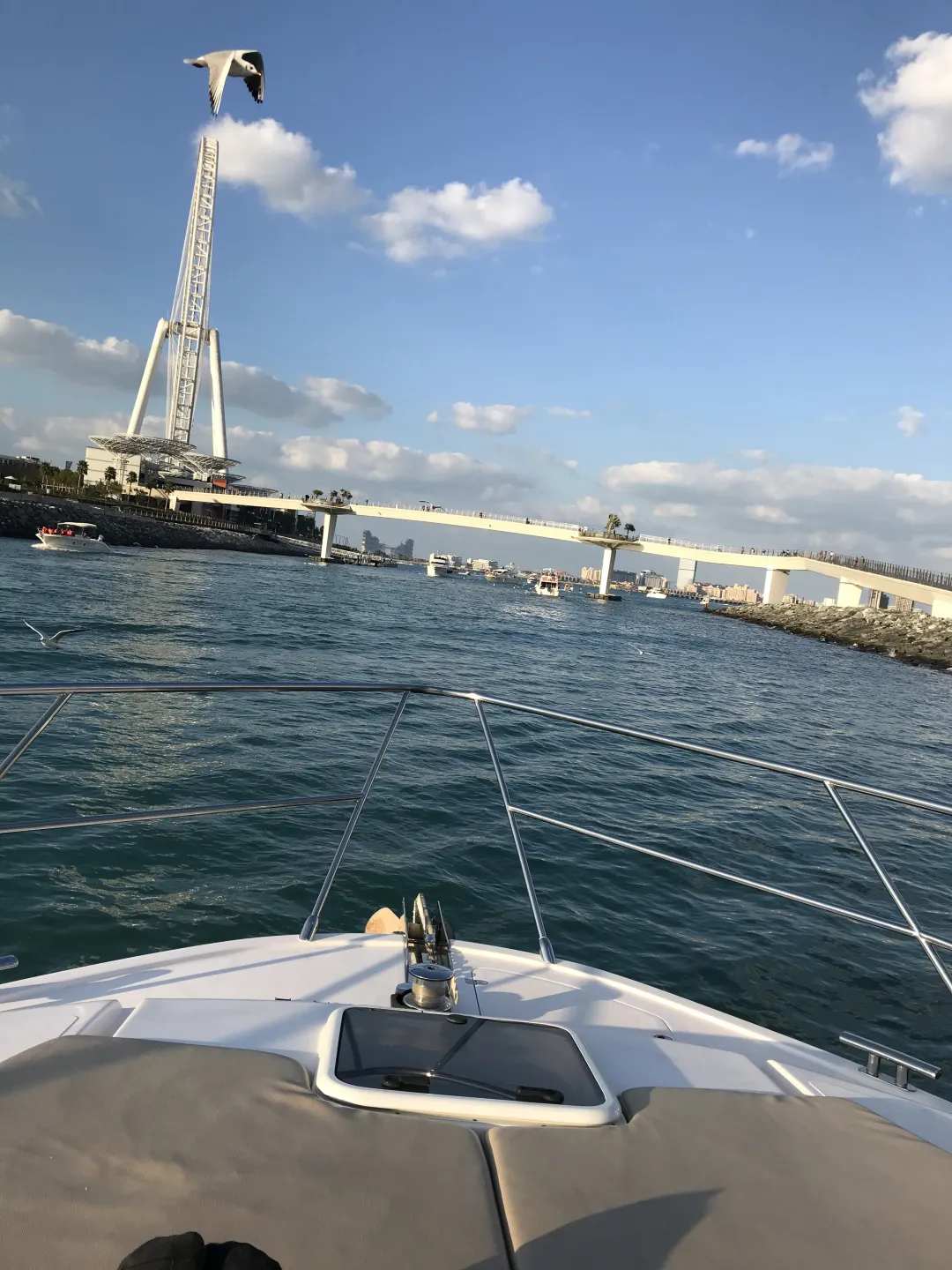 随着游艇穿梭高楼林立的Dubai Marina海滨新城,近距离、变角度观赏直接知名的建筑楼宇,诸如:【高的住宅楼-公主塔】【迪拜建筑一绝,拧巴的大厦——卡延塔】,游艇驶近【棕榈岛】近距离观赏亚特兰蒂斯酒店,并经过海湾上挺立的世界著名的【帆船酒店】,穿越棕榈岛大桥后返回Marina海滨新城。