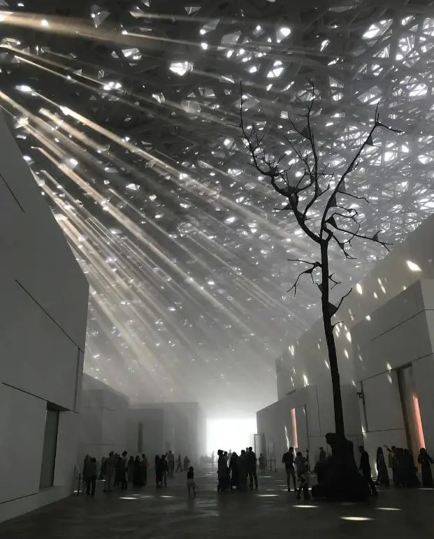 随后外观阿布扎比著名的—【滨海步行街】,结束后前往【阿布扎比卢浮宫】不入内卢浮宫博物馆城犹如一个传统的阿拉伯麦地那,您可以在穹顶下的步道上漫步并俯瞰大海。直径180米的巨大穹顶由近8000个独特的金属星星构成,这些星星组成复杂的几何图形。当阳光透过穹顶射下来时,穹顶下会呈现出富有动感的光之雨,令人联想起阿联酋绿洲上婆娑重叠的棕榈树。在这里光影与文化艺术珍品的穿梭下,它可以令人们了解到相应的国家、历史和地理环境,但又不只是平庸地诠释了人类文化发展的进程.