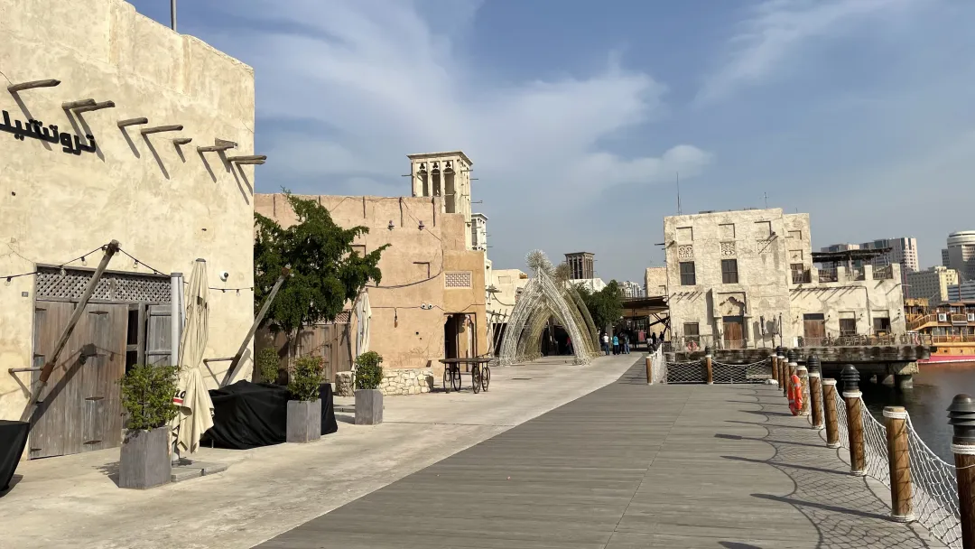 随后前往【AL SEEF】阿拉伯历史文化区,在迪拜湾沿岸由两个部分组成的,占地23万平方公里。一个是以古老建筑为特色的历史文化区,另一个是以现代建筑为代表的商业街区。昔日的活力与今日的奇迹交融在一起,传统的单桅帆船每天载着游人与两岸居民穿越风和日丽的水面,来往两岸。而欣赏老城区绝佳风光的好方法之一,便是从阿法迪历史区的风塔群出发开启一趟文化历史漫步之旅,步上Al Seef迷人的人行道,路过繁忙的码头,路过美食聚集的大道与活动广场,感受这条河流交织古今的繁华与这座城市的好天气。