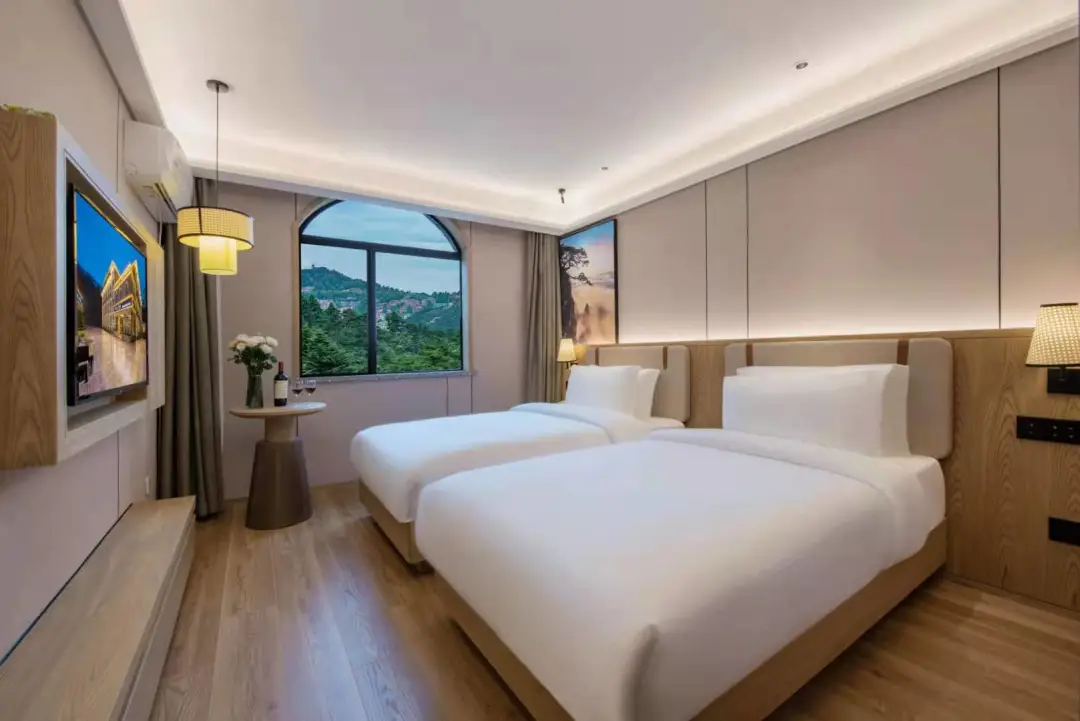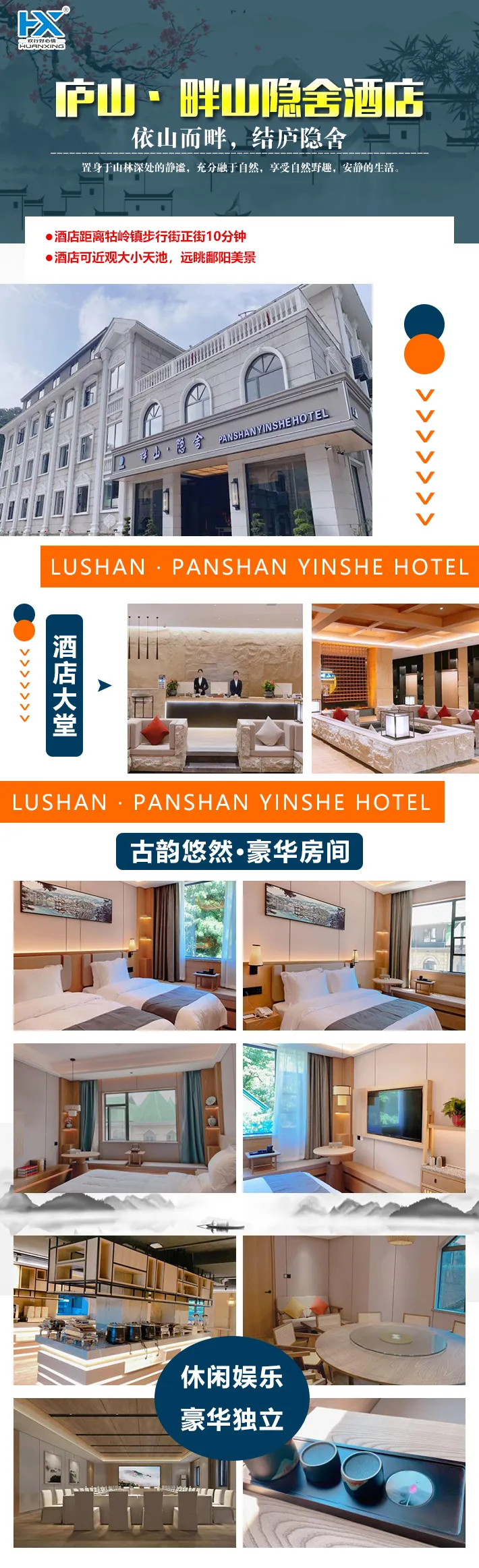 1、指定酒店住宿:指定5晚连住庐山畔山隐舍度假酒店(林夕标间)