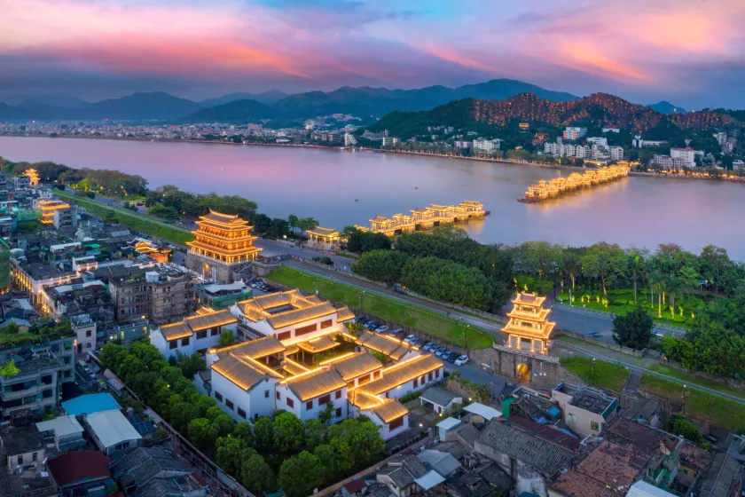 ◎前往游览被誉为世界上最早的启闭式桥梁【湘子桥(不登桥)】以其“十八梭船二十四洲”的独特风格与河北赵州桥、 泉州洛阳桥、北京卢沟桥(亦作芦沟桥)并称中国四大古桥。