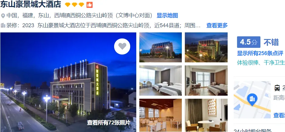 东山岛:豪景城大酒店、嘉意酒店、蔚蓝海酒店或同级